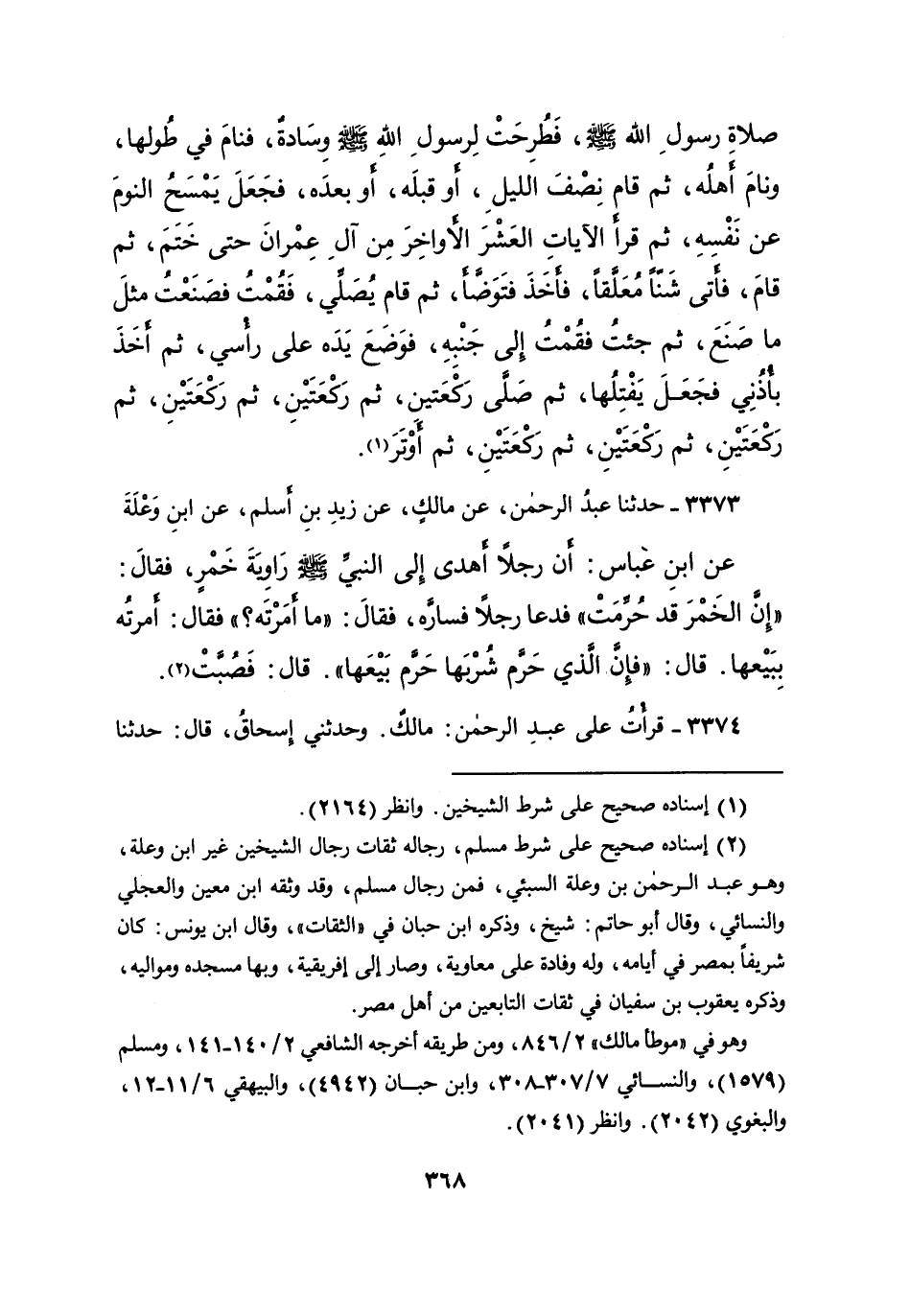 ٣٣٧٣ - حَدَّثَنَا عَبْدُ الرَّحْمَنِ، عَنْ مَالِكٍ، عَنْ زَيْدِ بْنِ أَسْلَمَ، عَنِ ابْنِ وَعْلَةَ، عَنِ ابْنِ عَبَّاسٍ، أَنَّ رَجُلًا أَهْدَى إِلَى النَّبِيِّ صَلَّى اللهُ عَلَيْهِ وَسَلَّمَ رَاوِيَةَ خَمْرٍ، فَقَالَ: " إِنَّ الْخَمْرَ قَدْ حُرِّمَتْ " فَدَعَا رَجُلًا فَسَارَّهُ، فَقَالَ: " مَا أَمَرْتَهُ؟ " فقَالَ: أَمَرْتُهُ بِبَيْعِهَا، قَالَ: " فَإِنَّ الَّذِي حَرَّمَ شُرْبَهَا حَرَّمَ بَيْعَهَا " قَالَ: فَصُبَّتْ (٢)