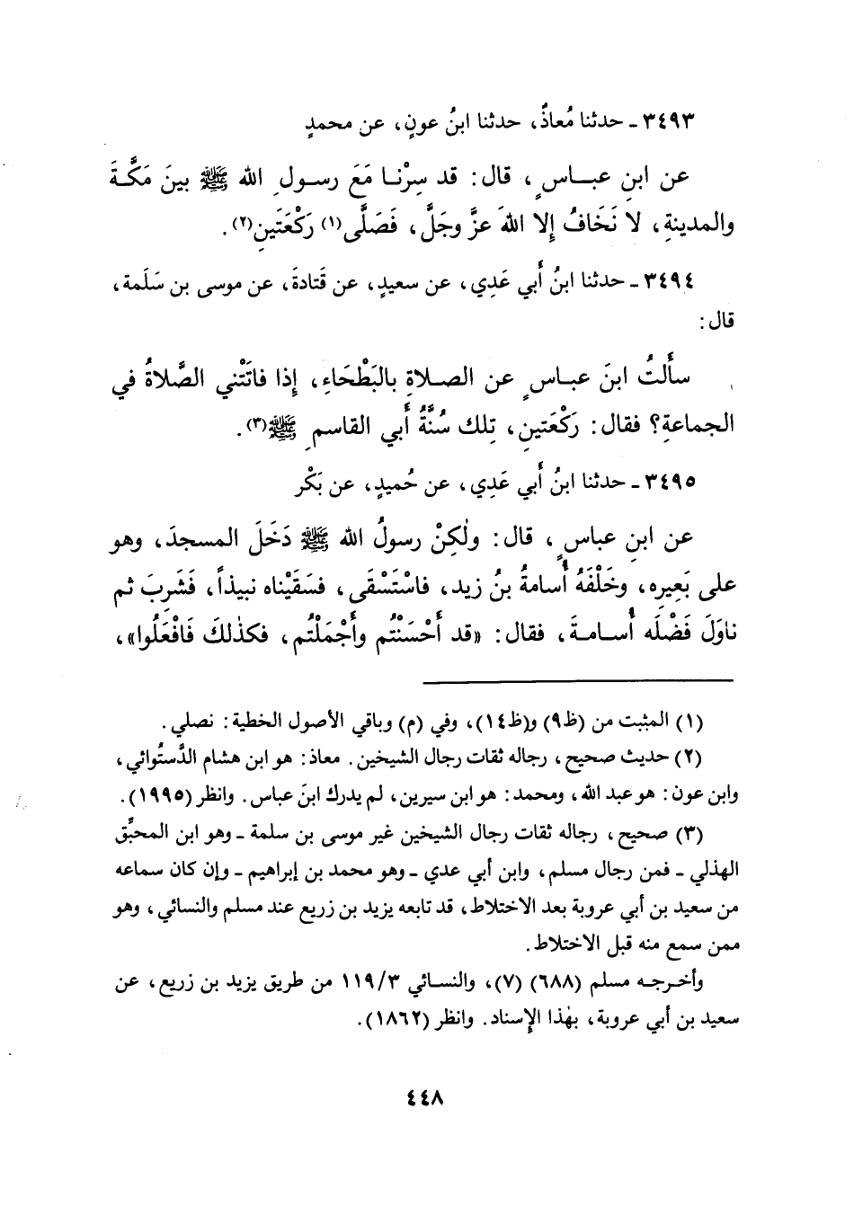 (٢) حديث صحيح، رجاله ثقات رجال الشيخين. معاذ: هو ابن هشام الدستُوائْي، وابن عون: هو عبد الله، ومحمد: هو ابن سيرين، لم يدرك ابن عباس. وانظر (١٩٩٥) .