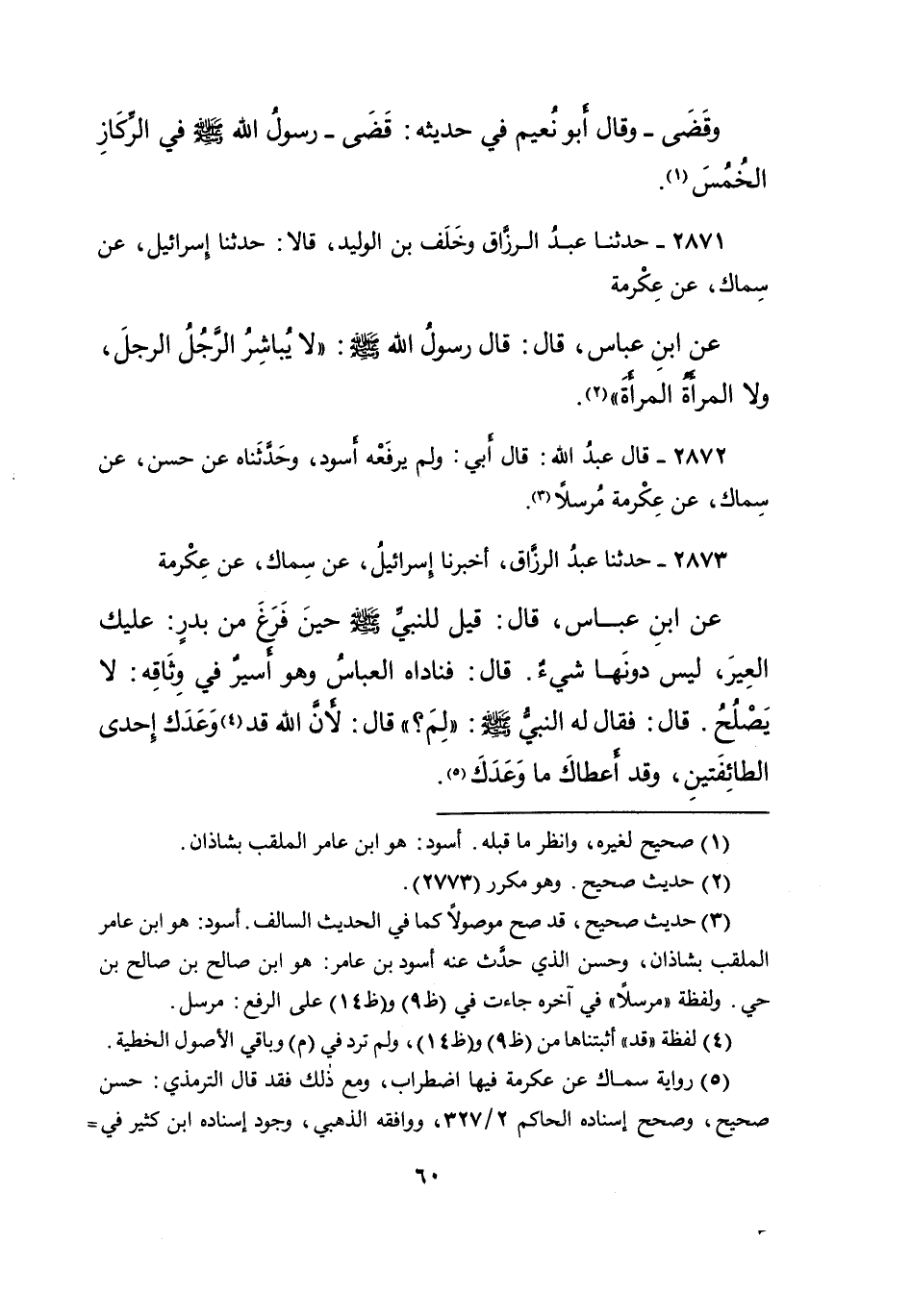 (٣) حديث صحيح، قد صح موصولاً كما في الحديث السالف. أسود: هو ابن عامر الملقب بشاذان، وحسن الذي حدث عنه أسود بن عامر: هو ابن صالح بن صالح بن حي. ولفظة "مرسلا" في آخره جاءت في (ظ٩) و (ط١٤) على الرفع: مرسل.