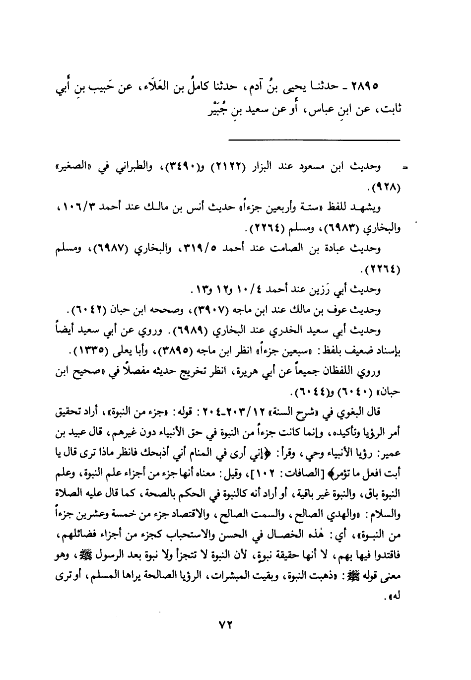 وحديث أبي سعيد الخدري عند البخاري (٦٩٨٩) . وروي عن أبي سعيد أيضاً بإسناد ضعيف بلفظ: "سبعين جزءاً" انظر ابن ماجه (٣٨٩٥) ، وأبا يعلى (١٣٣٥) .