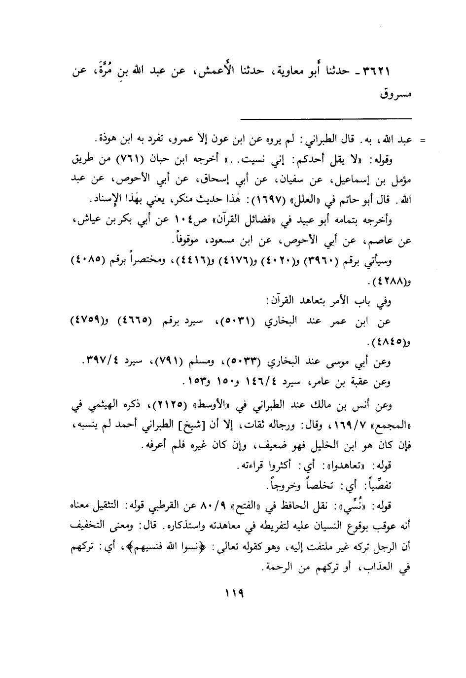 ٣٦٢١ - حَدَّثَنَا أَبُو مُعَاوِيَةَ، حَدَّثَنَا الْأَعْمَشُ، عَنْ عَبْدِ اللهِ بْنِ مُرَّةَ، عَنْ مَسْرُوقٍ،
