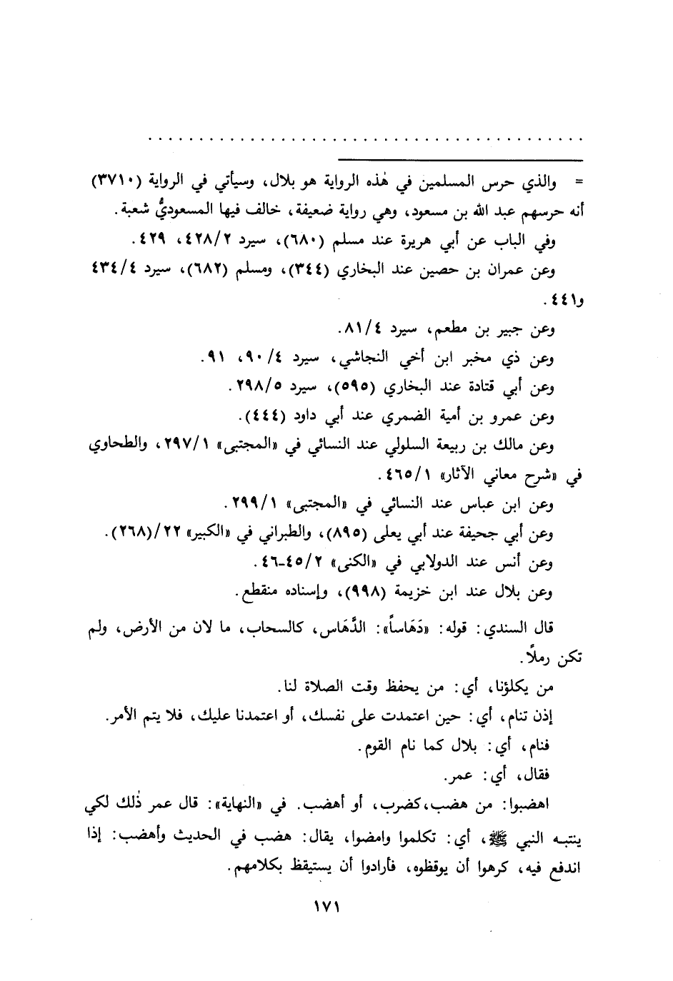 = والذي حرس المسلمين في هذه الرواية هو بلال، وسيأتي في الرواية (٣٧١٠) أنه حرسهم عبد الله بن مسعود، وهي رواية ضعيفة، خالف فيها المسعوديُّ شعبة.
