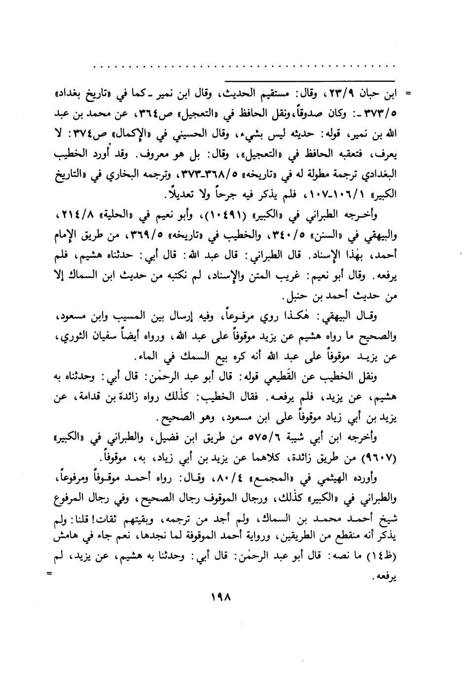 = ابن حبان ٩/٢٣، وقال: مستقيم الحديث، وقال ابن نمير -كما في "تاريخ بغداد" ٥/٣٧٣-: وكان صدوقاً، ونقل الحافظ في "التعجيل" ص ٣٦٤، عن محمد بن عبد الله بن نمير، قوله: حديثه ليس بشيء، وقال الحسيني في "الإكمال" ص ٣٧٤: لا يعرف، فتعقبه الحافظ في "التعجيل"، وقال: بل هو معروف. وقد أورد الخطيب البغدادي ترجمة مطولة له في "تاريخه" ٥/٣٦٨-٣٧٣، وترجمه البخاري في "التاريخ الكبير" ١/١٠٦-١٠٧، فلم يذكر فيه جرحاً ولا تعديلاً.