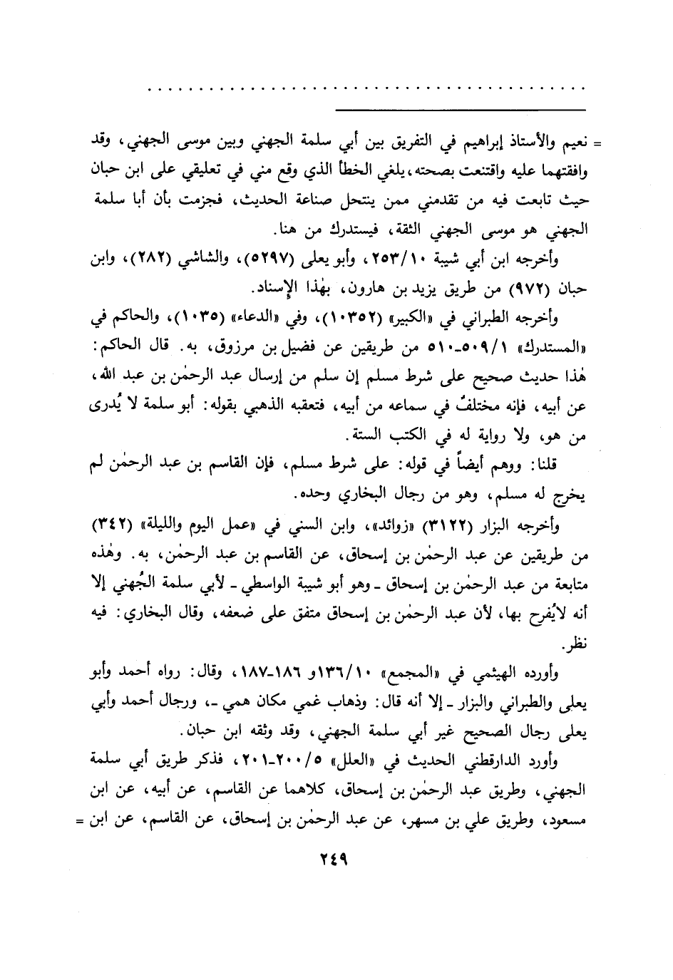 = نعيم والأستاذ إبراهيم في التفريق بين أبي سلمة الجهني وبين موسى الجهني، وقد وافقتهما عليه واقتنعت بصحته، يلغي الخطأ الذي وقع مني في تعليقي على ابن حبان حيث تابعت فيه من تقدمني ممن ينتحل صناعة الحديث، فجزمت بأن أبا سلمة الجهني هو موسى الجهني الثقة، فيستدرك من هنا.