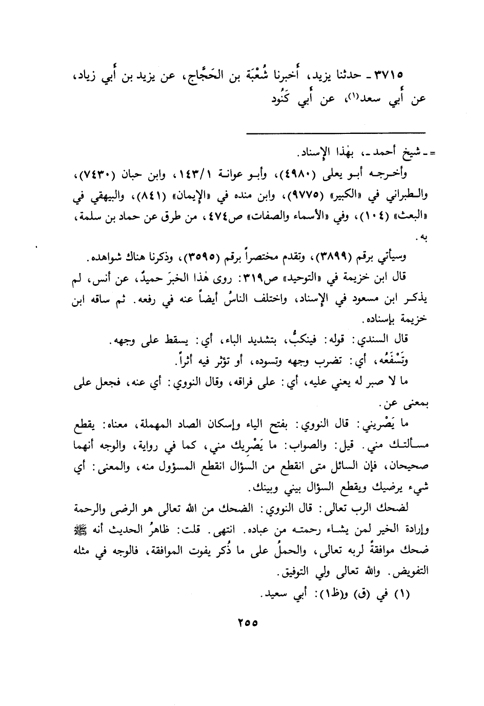 ٣٧١٥ - حَدَّثَنَا يَزِيدُ، أَخْبَرَنِي شُعْبَةُ بْنُ الْحَجَّاجِ، عَنْ يَزِيدَ بْنِ أَبِي زِيَادٍ، عَنْ أَبِي سَعْدٍ (١) ، عَنْ أَبِي الْكَنُودِ،