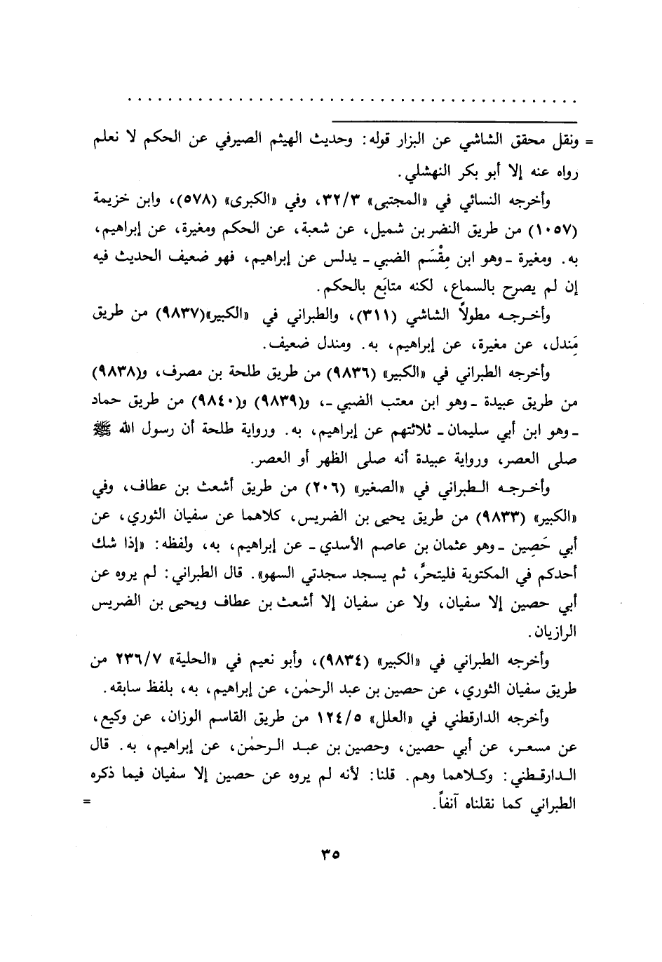 = ونقل محقق الشاشي عن البزار قوله: وحديث الهيثم الصيرفي عن الحكم لا نعلم رواه عنه إلا أبو بكر النهشلي.