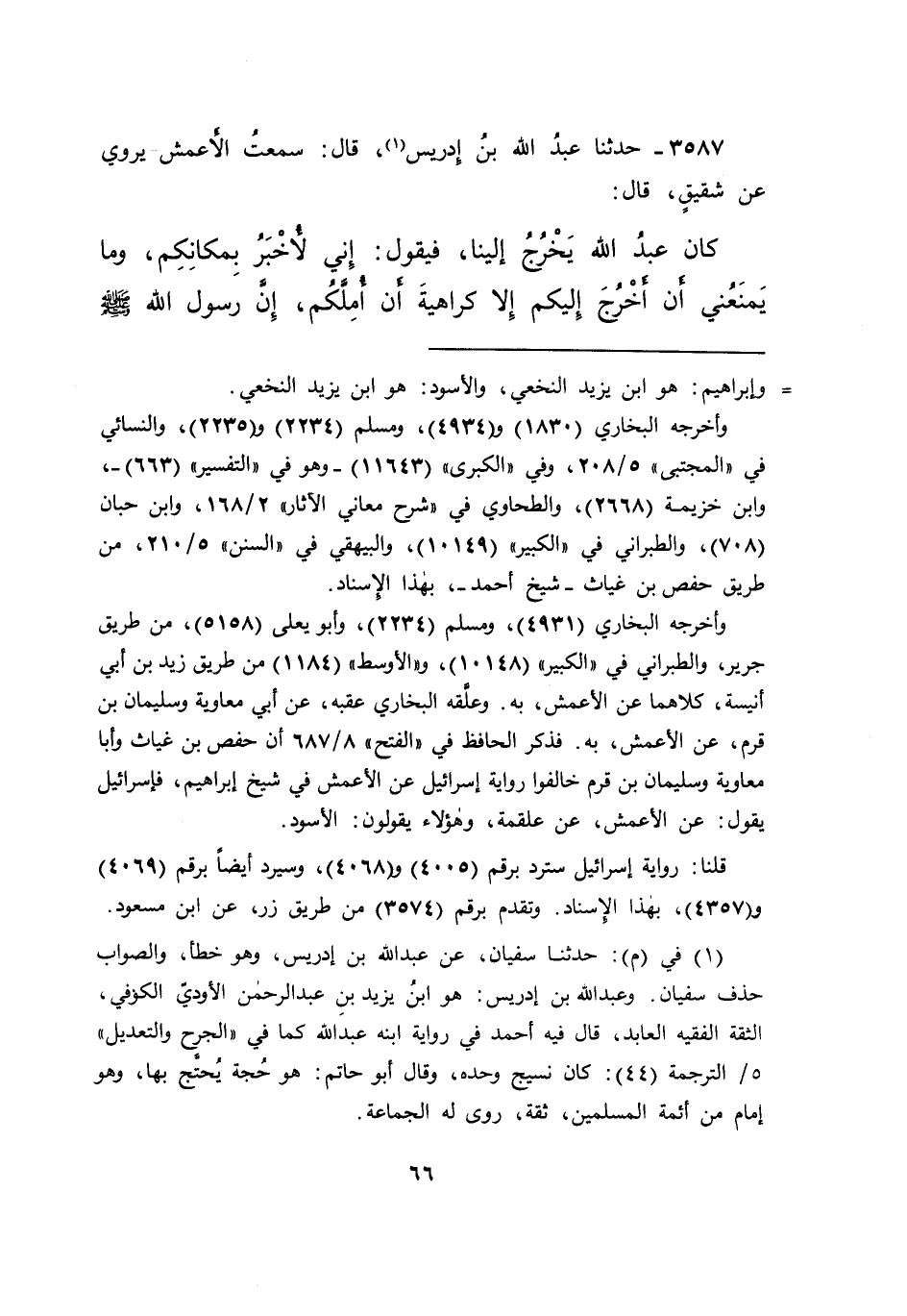 قلنا: رواية إسرائيل سترد برقم (٤٠٠٥) و (٤٠٦٨) ، وسيرد أيضاً برقم (٤٠٦٩) و (٤٣٥٧) ، بهذا الإسناد. وتقدم برقم (٣٥٧٤) من طريق زر، عن ابن مسعود.