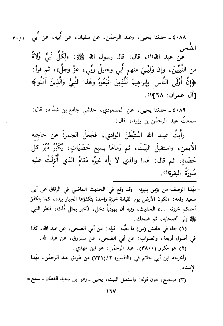 ٤٠٨٨ - حَدَّثَنَا يَحْيَى، وَعَبْدُ الرَّحْمَنِ، عَنْ سُفْيَانَ، عَنْ أَبِيهِ، عَنْ أَبِي الضُّحَى، عَنْ عَبْدِ اللهِ (١) ، قَالَ: قَالَ رَسُولُ اللهِ صَلَّى اللهُ عَلَيْهِ وَسَلَّمَ: " لِكُلِّ نَبِيٍّ وُلَاةٌ مِنَ النَّبِيِّينَ، وَإِنَّ وَلِيِّي مِنْهُمْ أَبِي، وَخَلِيلُ رَبِّي عَزَّ وَجَلَّ "، ثُمَّ قَرَأَ: {إِنَّ أَوْلَى النَّاسِ بِإِبْرَاهِيمَ لَلَّذِينَ اتَّبَعُوهُ وَهَذَا النَّبِيُّ وَالَّذِينَ آمَنُوا} [آل عمران: ٦٨] (٢)