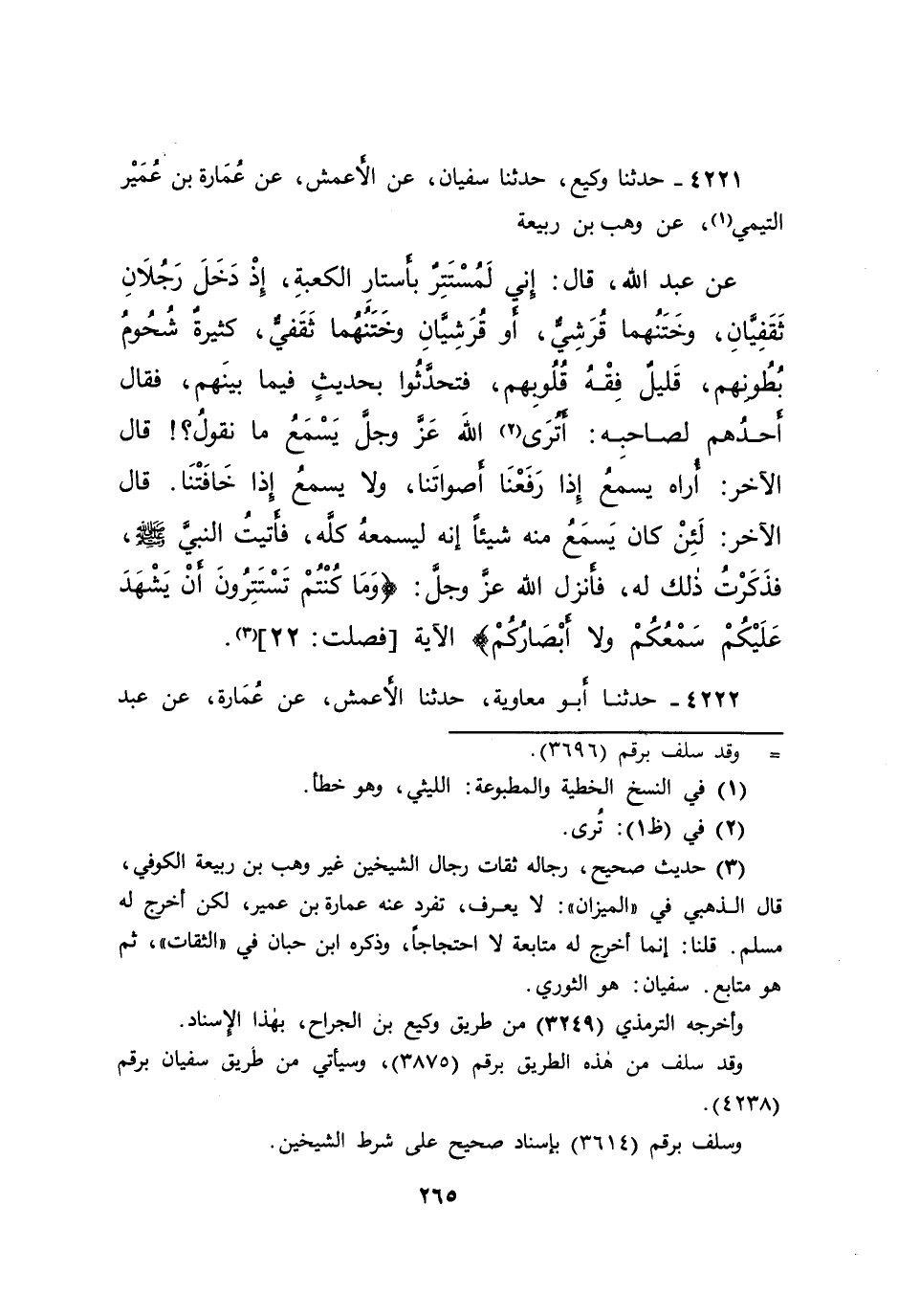 ٤٢٢٢ - حَدَّثَنَا أَبُو مُعَاوِيَةَ، حَدَّثَنَا الْأَعْمَشُ، عَنْ عُمَارَةَ، عَنْ عَبْدِ