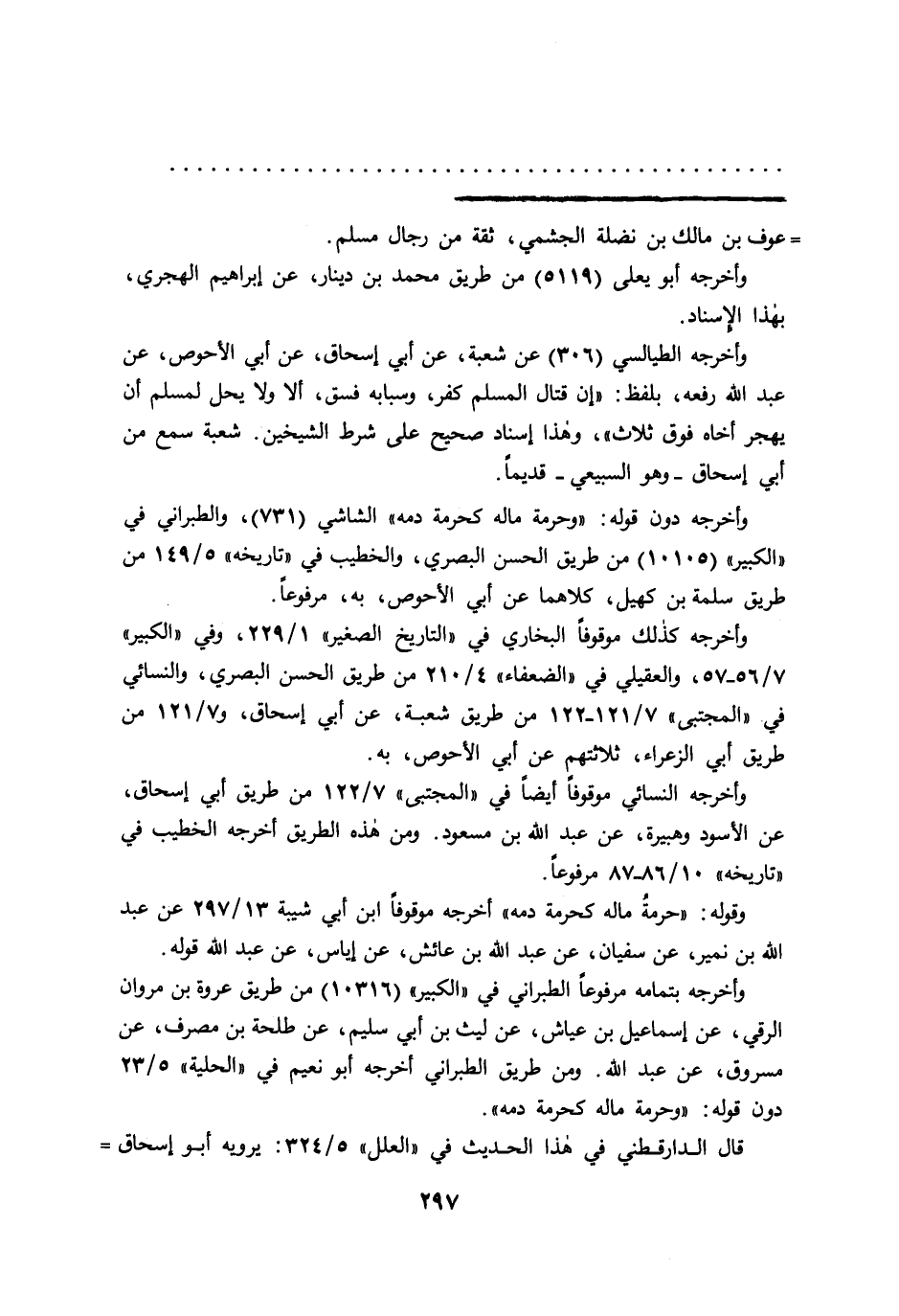 وقوله: "حرمةُ ماله كحرمة دمه " أخرجه موقوفاً ابن أبي شيبة ١٣/٢٩٧ عن عبد الله بن نمير، عن سفيان، عن عبد الله بن عائش، عن إياس، عن عبد الله قوله.