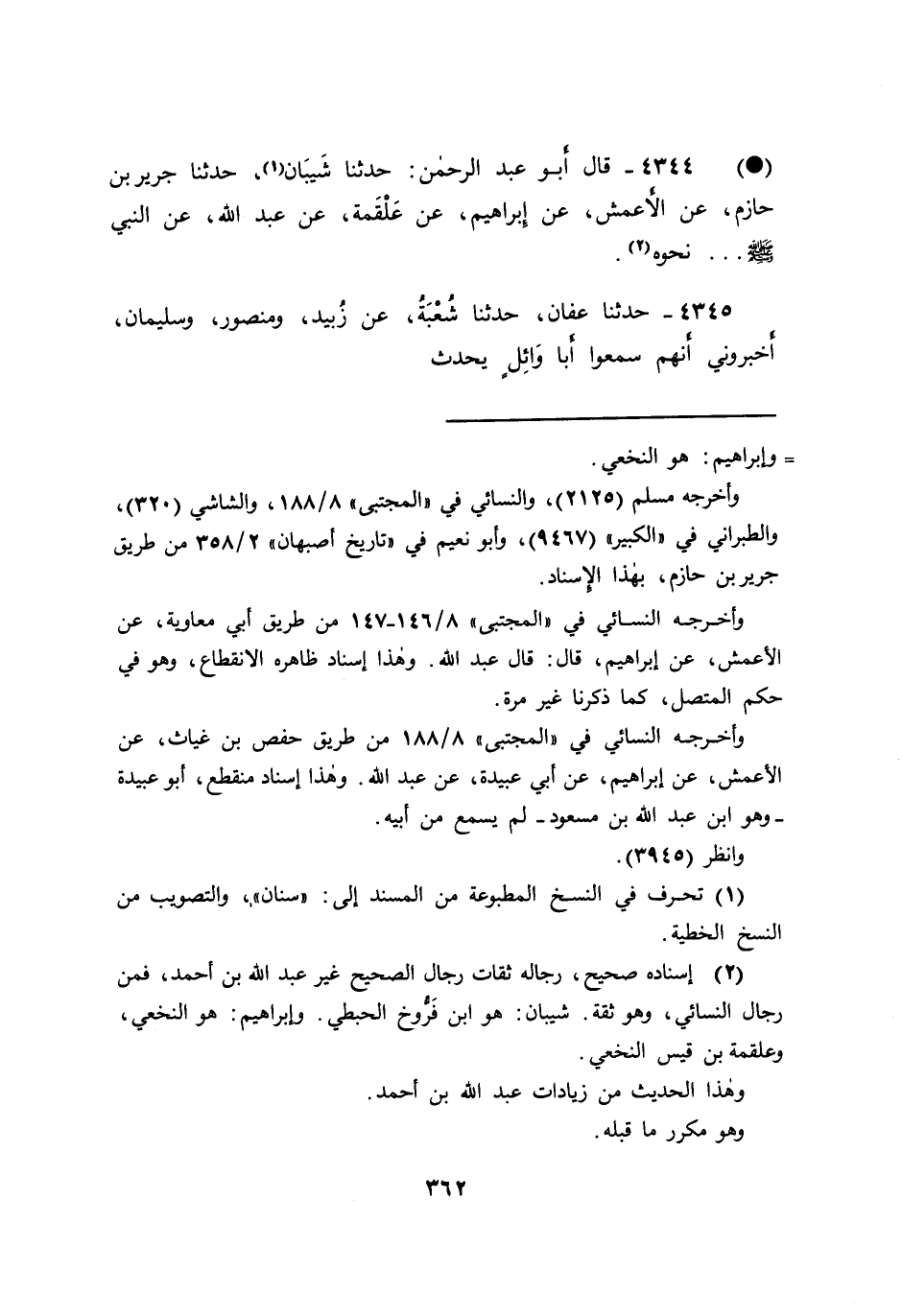 (٢) إسناده صحيح، رجاله ثقات رجال الصحيح غير عبد الله بن أحمد، فمن رجال النسائي، وهو ثقة. شيبان: هو ابن فَرُّوخ الحبطي. وإبراهيم: هو النخعي، وعلقمة بن قيس النخعي.
