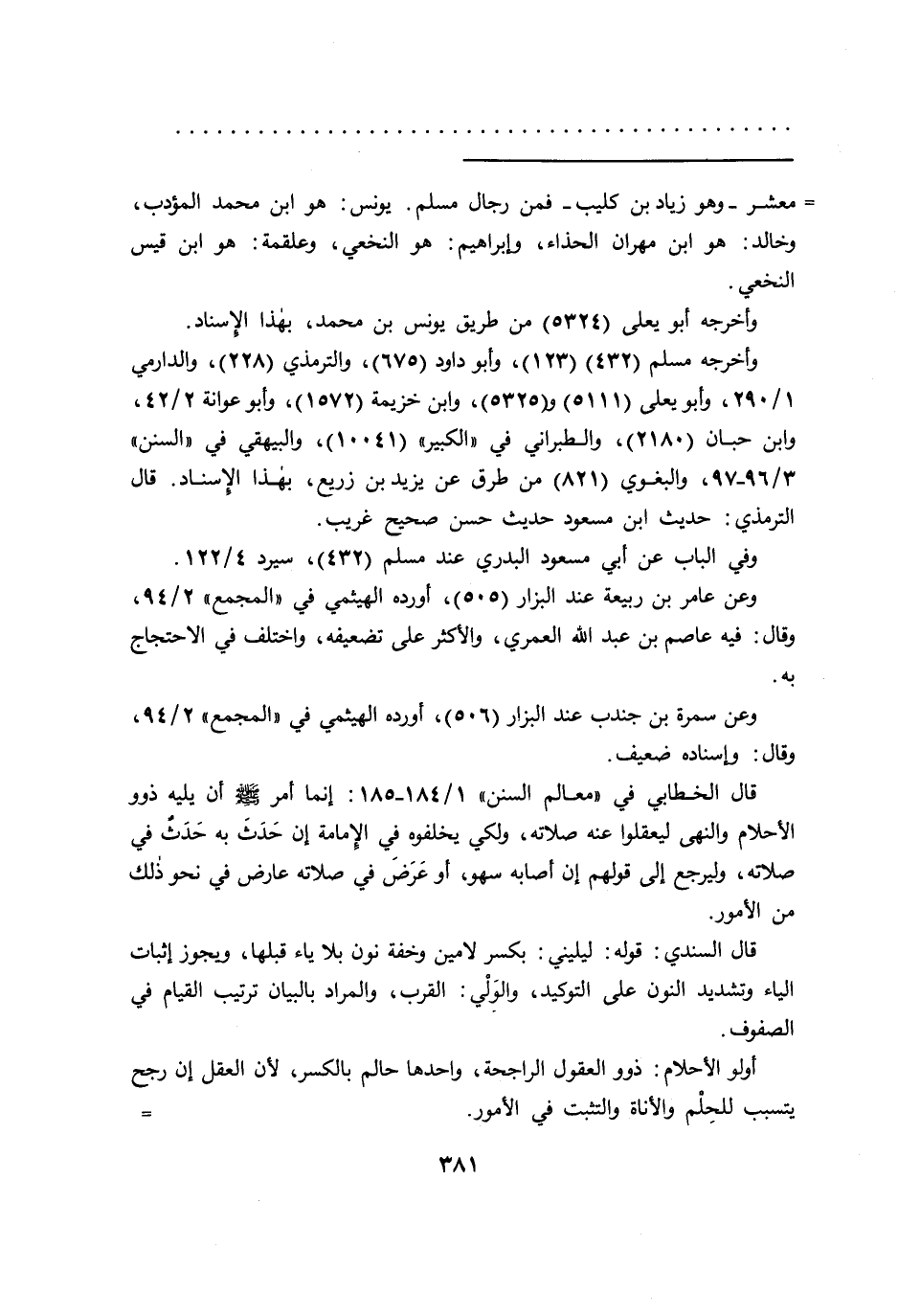 = معشر- وهو زياد بن كليب - فمن رجال مسلم. يونس: هو ابن محمد المؤدب، وخالد: هو ابن مهران الحذاء، وإبراهيم: هو النخعي، وعلقمة: هو ابن قيس النخعي.