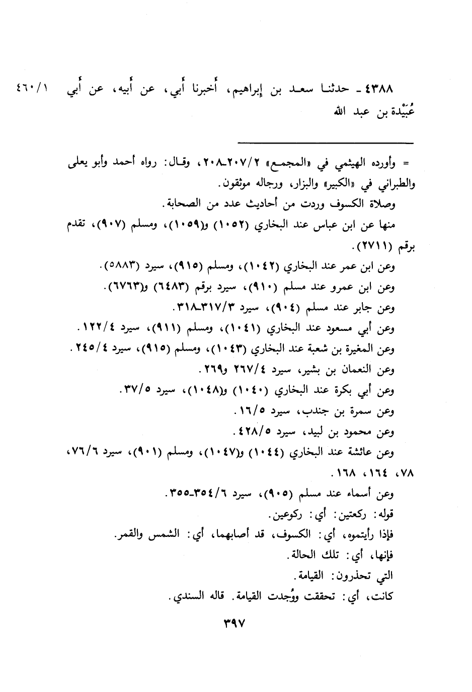 وعن عائشة عند البخاري (١٠٤٤) و (١٠٤٧) ، ومسلم (٩٠١) ، سيرد ٦/٧٦، ٧٨، ١٦٤، ١٦٨.