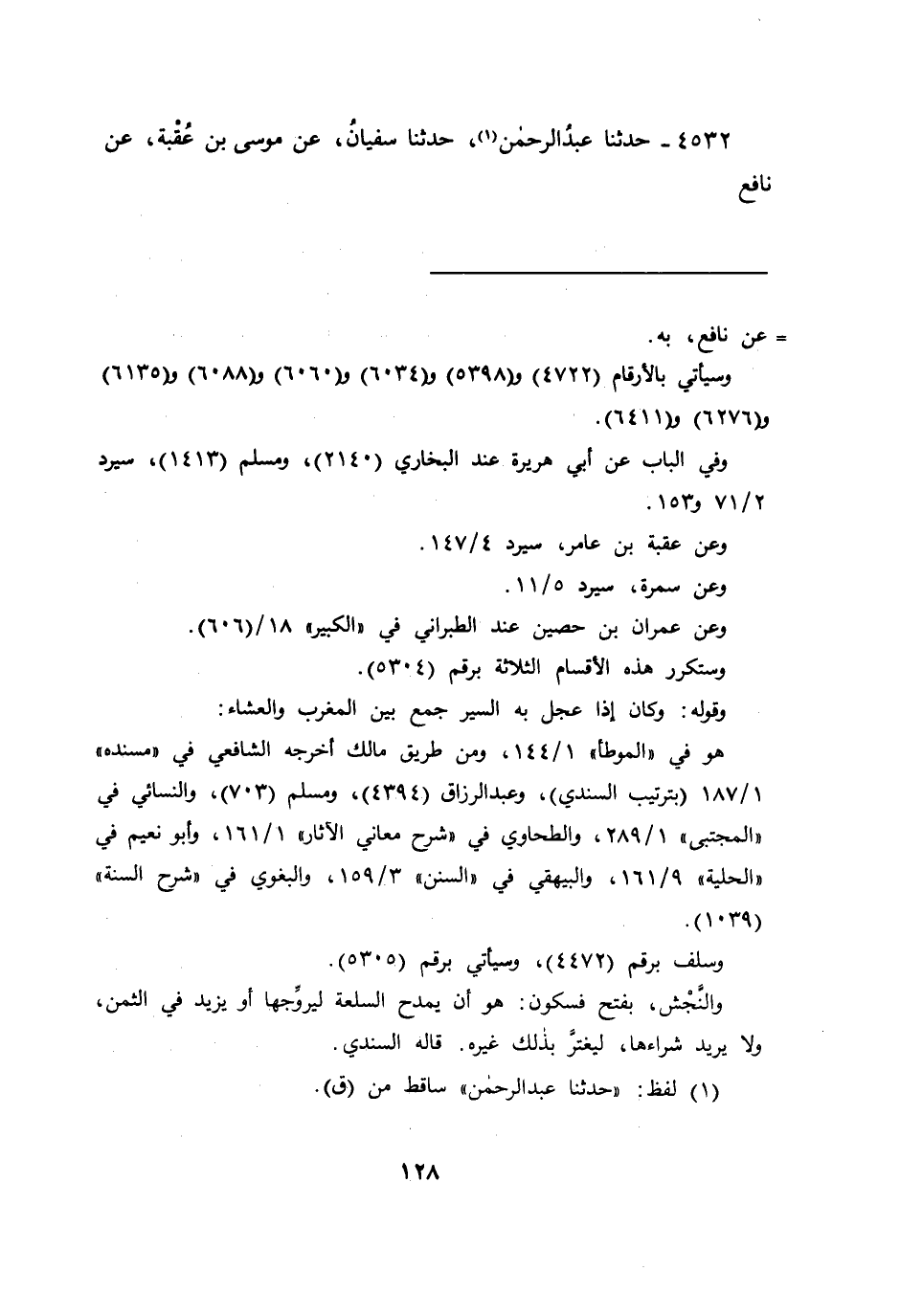 ٤٥٣٢ - حَدَّثَنَا عَبْدُ الرَّحْمَنِ، (١) حَدَّثَنَا سُفْيَانُ، عَنْ مُوسَى بْنِ عُقْبَةَ، عَنْ نَافِعٍ،