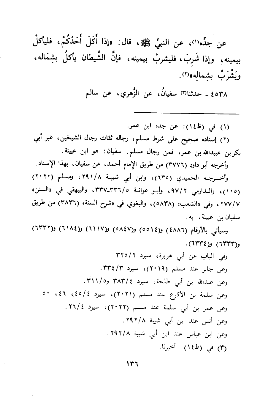 ٤٥٣٨ - حَدَّثَنَا (٣) سُفْيَانُ، عَنِ الزُّهْرِيِّ، عَنْ سَالِمٍ،