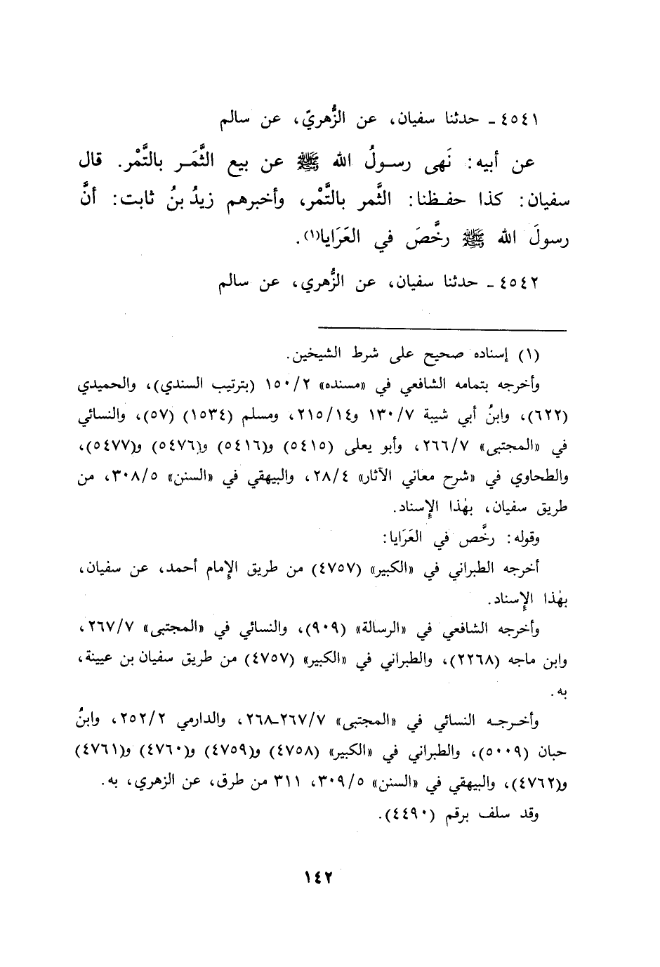 ٤٥٤١ - حَدَّثَنَا سُفْيَانُ، عَنِ الزُّهْرِيِّ، عَنْ سَالِمٍ، عَنْ أَبِيهِ،: " نَهَى رَسُولُ اللهِ صَلَّى اللهُ عَلَيْهِ وَسَلَّمَ، عَنْ بَيْعِ الثَّمَرِ بِالتَّمْرِ " قَالَ سُفْيَانُ: " كَذَا حَفِظْنَا الثَّمَرِ بِالتَّمْرِ "