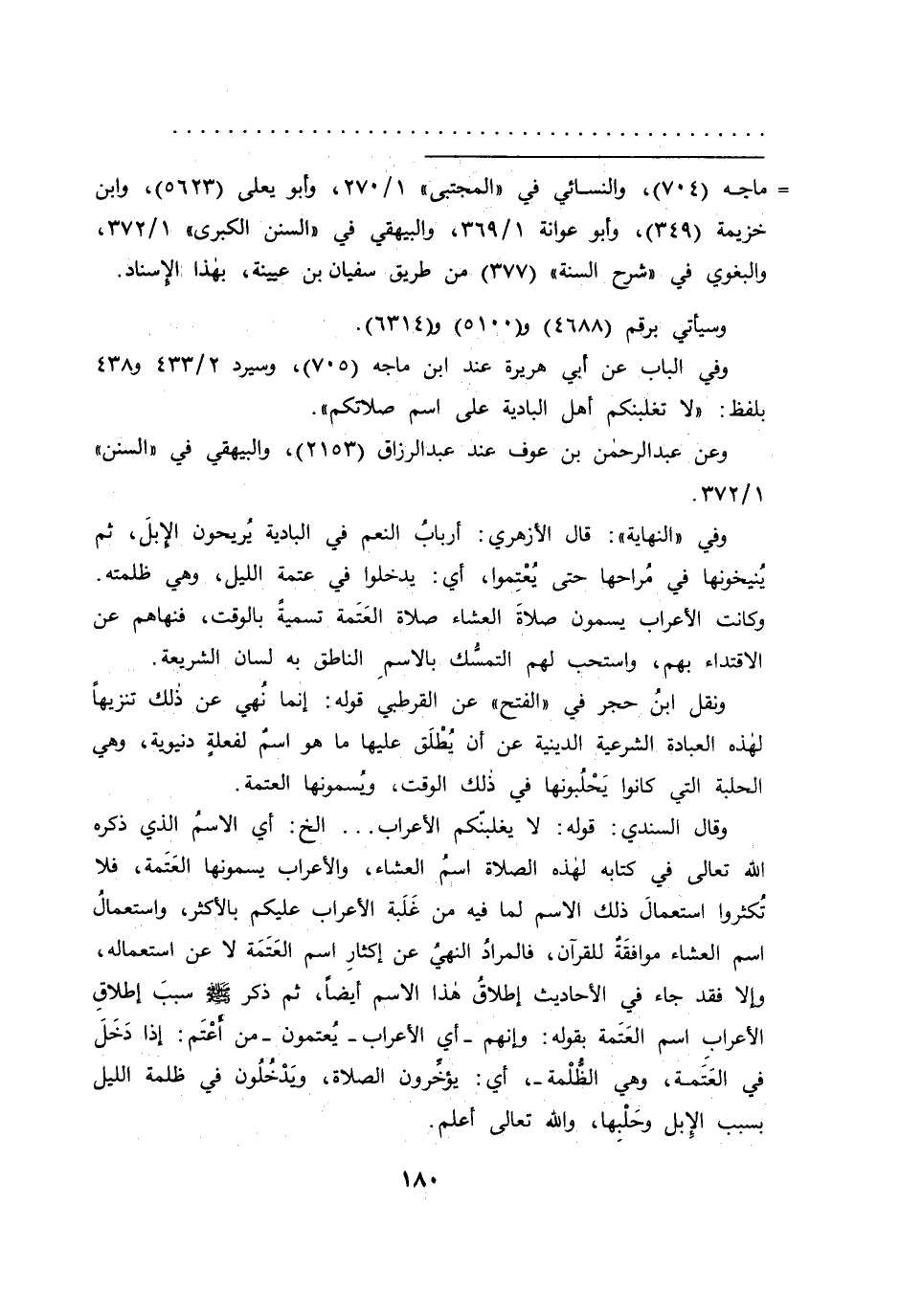 ونقل ابنُ حجر في "الفتح" عن القرطبي قوله: إنما نُهي عن ذلك تنزيهاً لهذه العبادة الشرعية الدينية عن أن يُطلق عليها ما هو اسم لفعلةٍ دنيوية، وهي الحلبة التي كانوا يحلُبونها في ذلك الوقت، وُيسمونها العتمة.