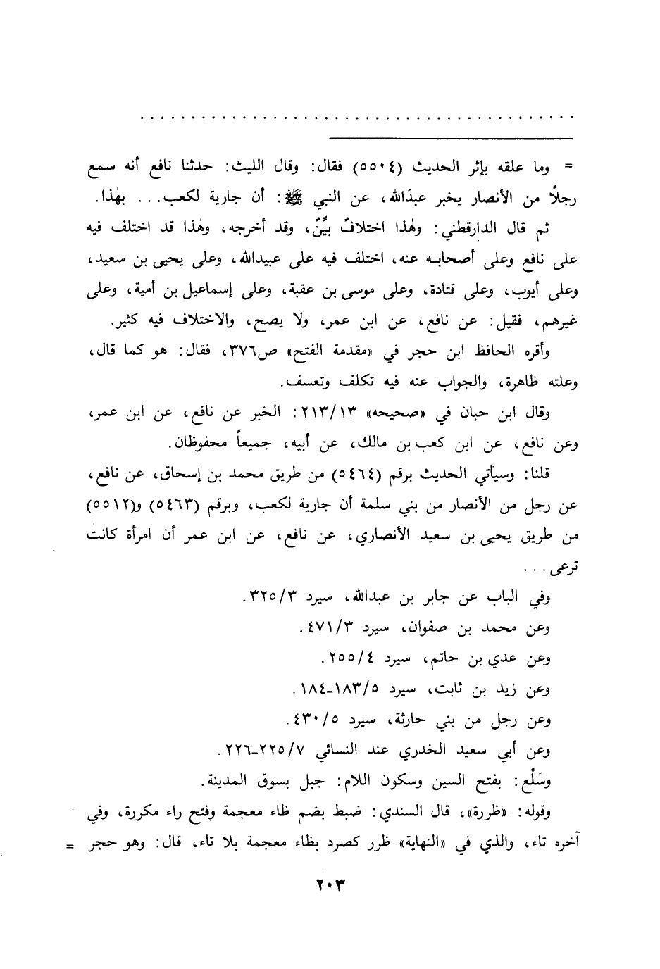 = وما علقه بإثر الحديث (٥٥٠٤) فقال: وقال الليث: حدثنا نافع أنه سمع رجلاً من الأنصار يخبر عبد الله، عن النبي صَلَّى اللهُ عَلَيْهِ وَسَلَّمَ: أن جارية لكعب ... بهذا.