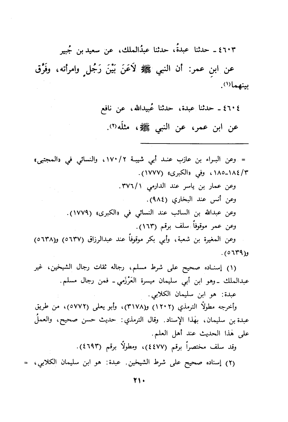 = وعن البراء بن عازب عند أبي شيبة ٢/١٧٠، والنسائي في "المجتبى" ٣/١٨٤-١٨٥، وفي "الكبرى" (١٧٧٧) .