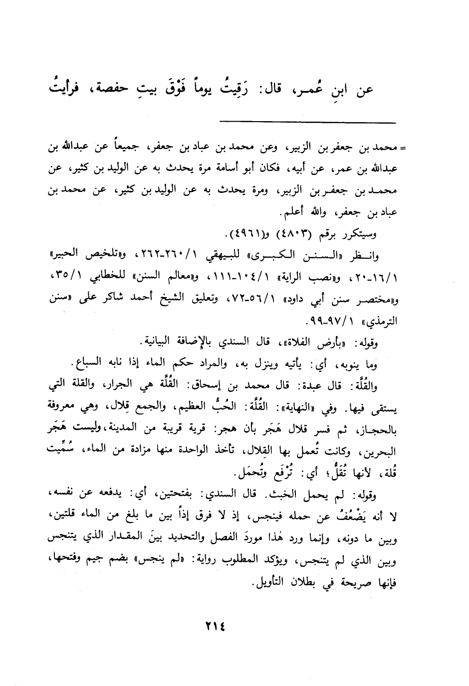 وانظر "السنن الكبرى" للبيهقي ١/٢٦٠-٢٦٢، و"تلخيص الحبير" ١/١٦-٢٠، و"نصب الراية" ١/١٠٤-١١١، و"معالم السنن" للخطابي ١/٣٥، و"مختصر سنن أبي داود" ١/٥٦-٧٢، وتعليق الشيخ أحمد شاكر على "سنن الترمذي" ١/٩٧-٩٩.