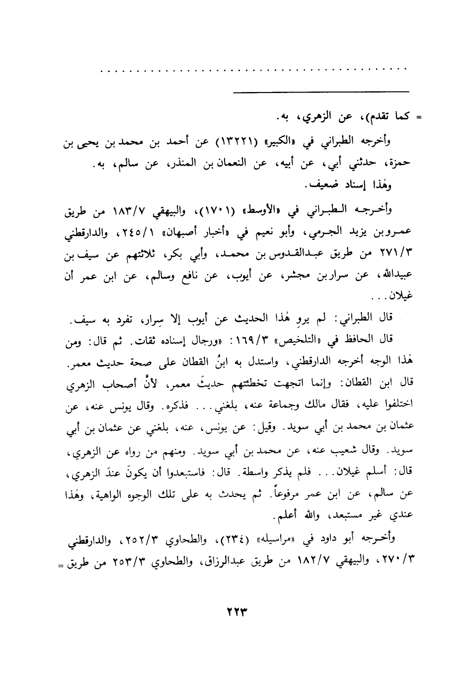 وأخرجه الطبراني في "الأوسط" (١٧٠١) ، والبيهقي ٧/١٨٣ من طريق عمرو بن يزيد الجرمي، وأبو نعيم في "أخبار أصبهان" ١/٢٤٥، والدارقطني ٣/٢٧١ من طريق عبد القدوس بن محمد، وأبي بكر، ثلاثتهم عن سيف بن عبيد الله، عن سرار بن مجشر، عن أيوب، عن نافع وسالم، عن ابن عمر أن غيلان ...