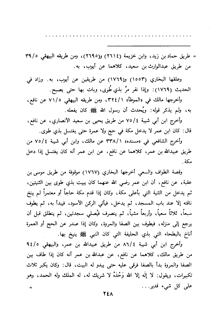 وأخرج ابن أبي شيبة ٤/٧٥ من طريق يحيى بن سعيد الأنصاري، عن نافع، قال: كان ابن عمر لا يدخل مكة في حج ولا عمرة حتى يغتسل بذي طوى.