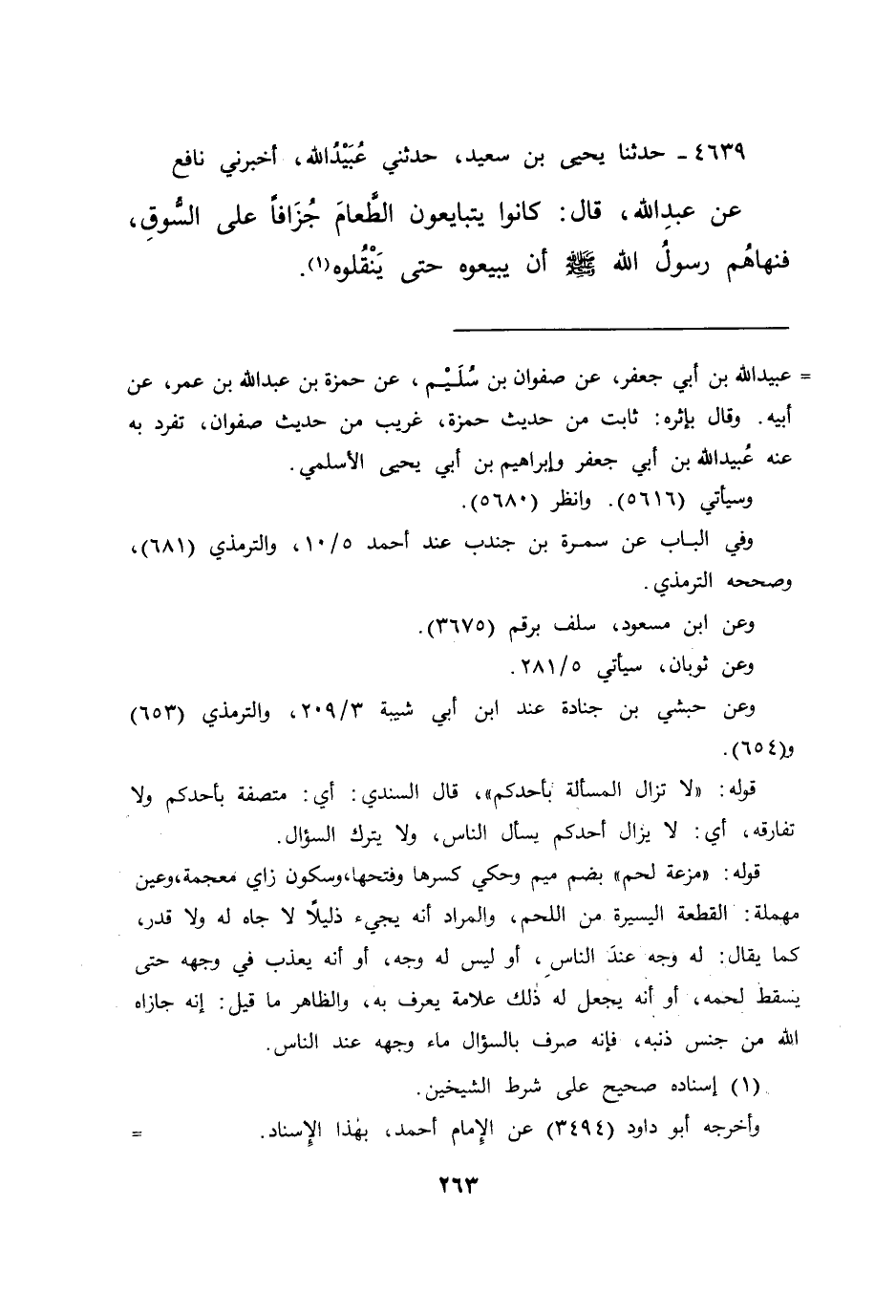 ٤٦٣٩ - حَدَّثَنَا يَحْيَى بْنُ سَعِيدٍ، حَدَّثَنِي عُبَيْدُ اللهِ، أَخْبَرَنِي نَافِعٌ، عَنْ عَبْدِ اللهِ، قَالَ: كَانُوا يَتَبَايَعُونَ الطَّعَامَ جُزَافًا عَلَى السُّوقِ " فَنَهَاهُمْ رَسُولُ اللهِ صَلَّى اللهُ عَلَيْهِ وَسَلَّمَ، أَنْ يَبِيعُوهُ حَتَّى يَنْقُلُوهُ " (١)