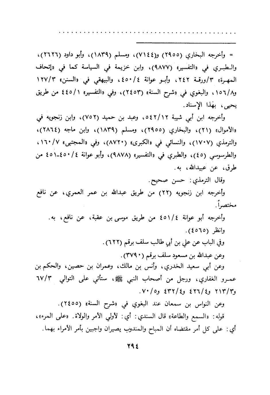 وعن أبي سعيد الخدري، وأنس بن مالك، وعمران بن حصين، والحكم بن عمرو الغفاري، ورجل من أصحاب النبي صَلَّى اللهُ عَلَيْهِ وَسَلَّمَ، ستأتي على التوالي ٣/٦٧ و٣/٢١٣ و٤/٤٢٦ و٤/٤٣٢ و٥/٧٠.