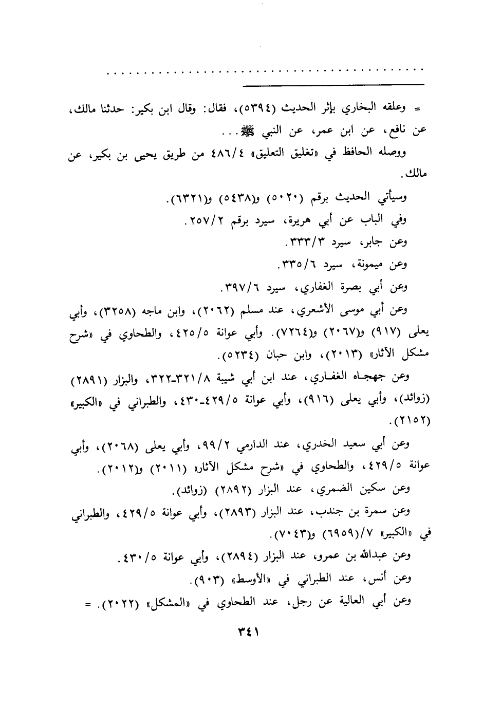 =وعلقه البخاري بإثر الحديث (٥٣٩٤) ، فقال: وقال ابن بكير: حدثنا مالك، عن نافع، عن ابن عمر، عن النبي صَلَّى اللهُ عَلَيْهِ وَسَلَّمَ ...