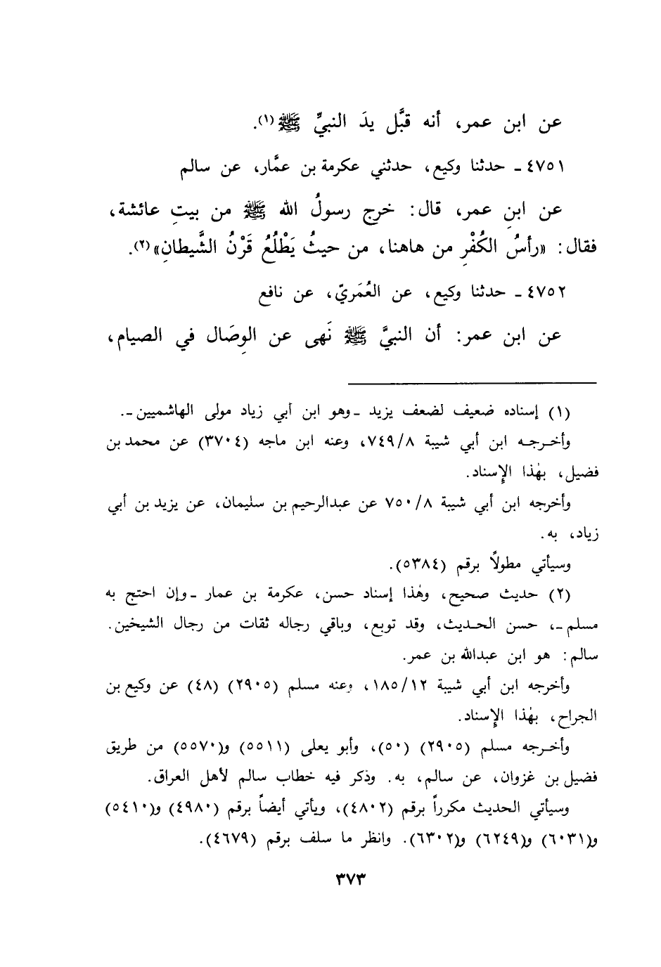 ٤٧٥٢ - حَدَّثَنَا وَكِيعٌ، عَنِ الْعُمَرِيِّ، عَنْ نَافِعٍ، عَنِ ابْنِ عُمَرَ، أَنَّ النَّبِيَّ صَلَّى اللهُ عَلَيْهِ وَسَلَّمَ نَهَى عَنِ الْوِصَالِ فِي الصِّيَامِ