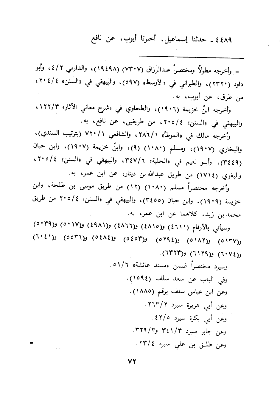 ٤٤٨٩ - حَدَّثَنَا إِسْمَاعِيلُ، أَخْبَرَنَا أَيُّوبُ، عَنْ نَافِعٍ،