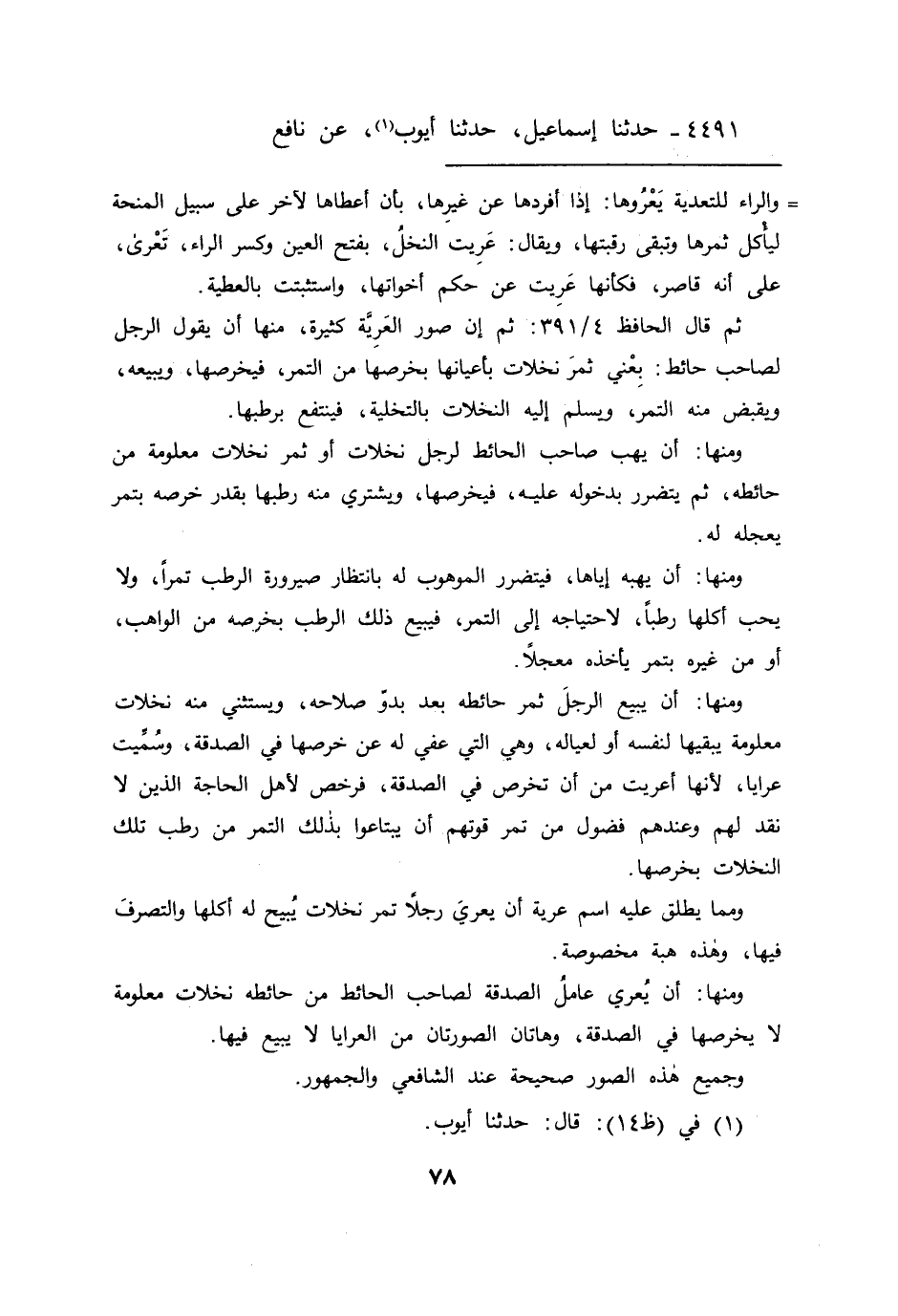 ثم قال الحافظ ٤/٣٩١: ثم إن صور العريَّة كثيرة، منها أن يقول الرجل لصاحب حائط: بعني ثمر نخلات بأعيانها بخرصها من التمر، فيخرصها، ويبيعه، ويقبض منه التمر، ويسلم إليه النخلات بالتخلية، فينتفع برطبها.