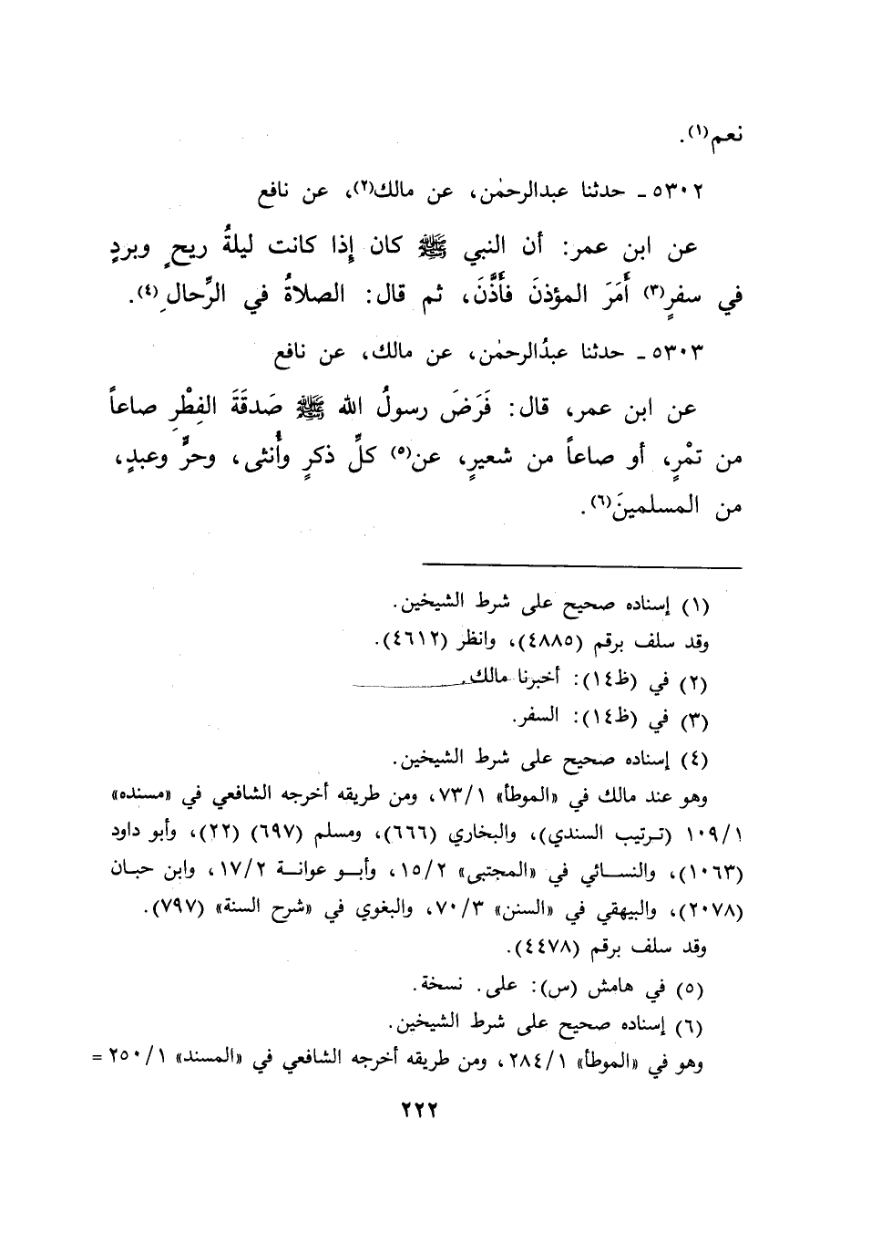 ٥٣٠٣ - حَدَّثَنَا عَبْدُ الرَّحْمَنِ، عَنْ مَالِكٍ، عَنْ نَافِعٍ، عَنِ ابْنِ عُمَرَ قَالَ: " فَرَضَ رَسُولُ اللهِ صَلَّى اللهُ عَلَيْهِ وَسَلَّمَ صَدَقَةَ الْفِطْرِ صَاعًا مِنْ تَمْرٍ أَوْ صَاعًا مِنْ شَعِيرٍ، عَنْ (٥) كُلِّ ذَكَرٍ وَأُنْثَى وَحُرٍّ وَعَبْدٍ مِنَ الْمُسْلِمِينَ " (٦)