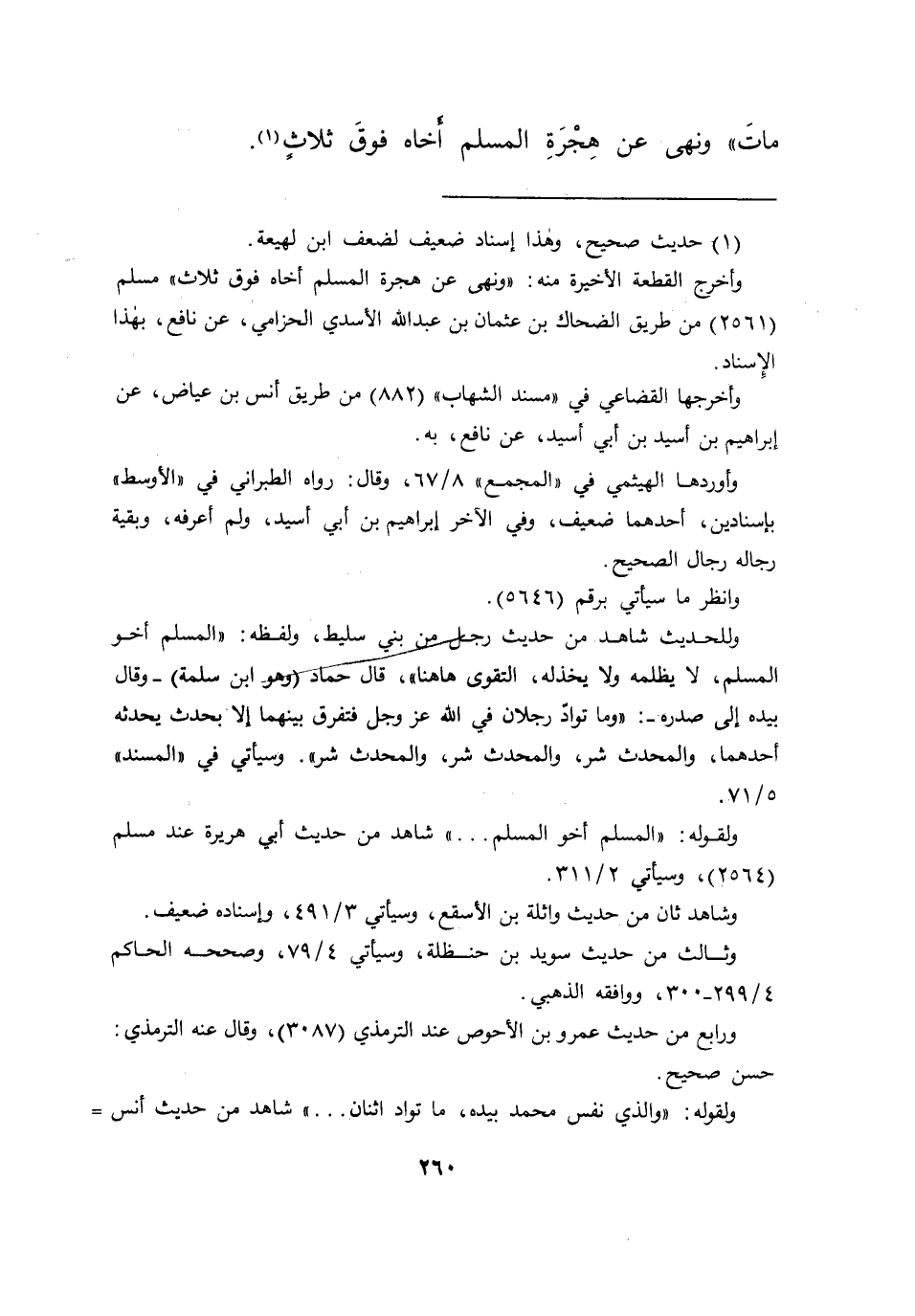 " وَنَهَى عَنْ هِجْرَةِ الْمُسْلِمِ أَخَاهُ فَوْقَ ثَلَاثٍ " (١)