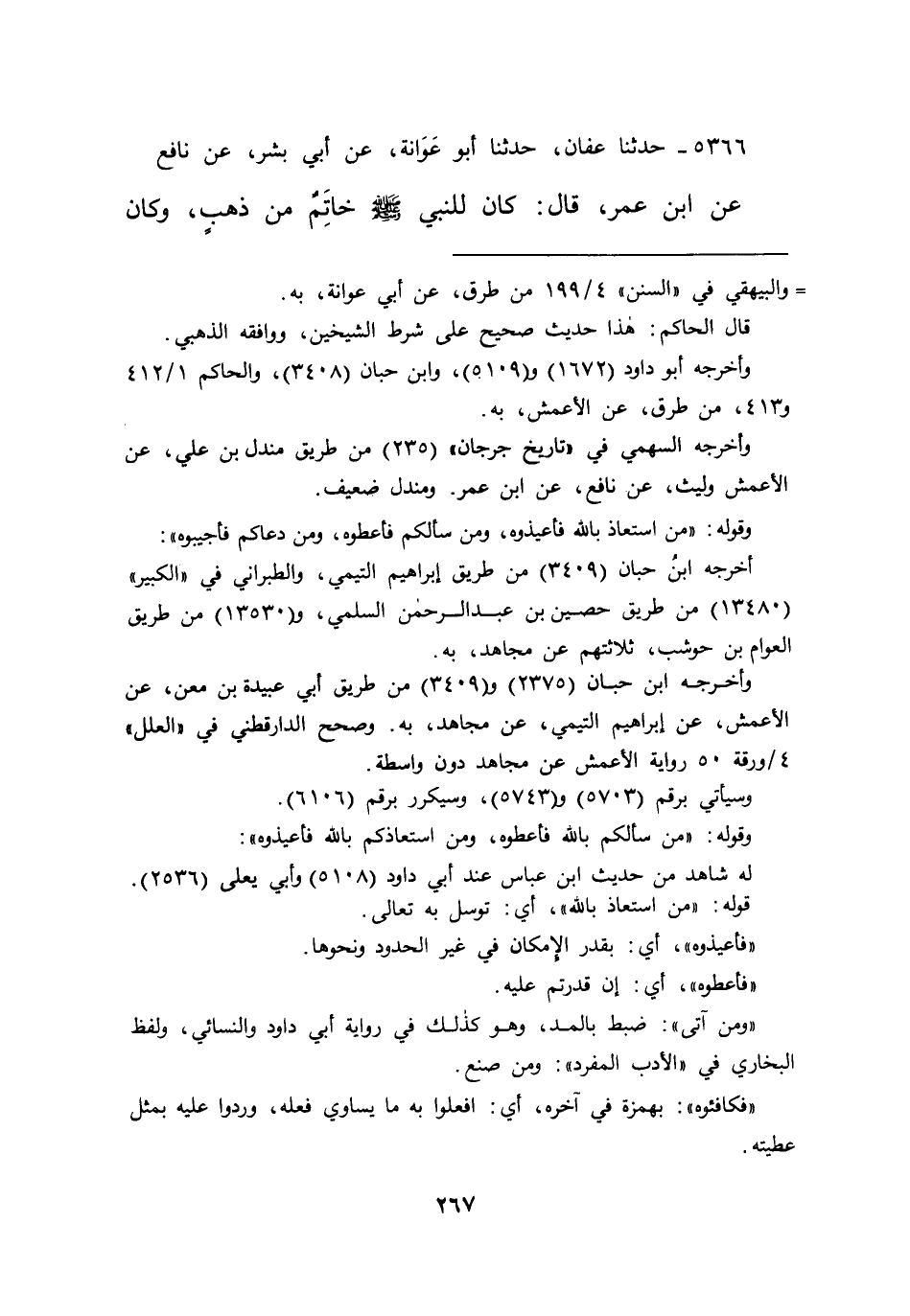 وقوله:"من استعاذ بالله فأعيذوه، ومن سألكم فأعطوه، ومن دعاكم فأجيبوه": أخرجه ابنُ حبان (٣٤٠٩) من طريق إبراهيم التيمي، والطبراني في "الكبير" (١٣٤٨٠) من طريق حصين بن عبد الرحمن السلمي، و (١٣٥٣٠) من طريق العوام بن حوشب، ثلاثتهم عن مجاهد، به.