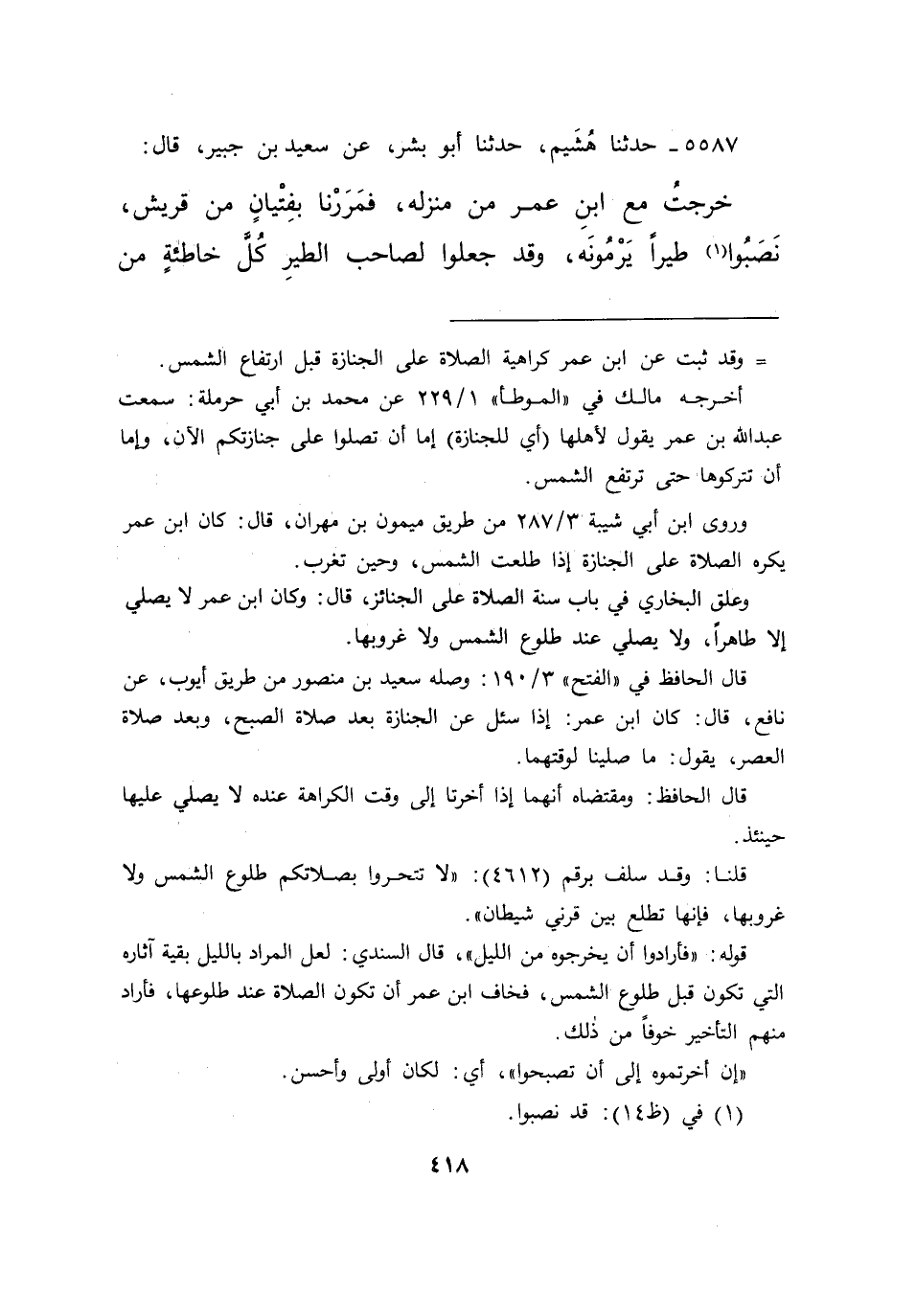 ٥٥٨٧ - حَدَّثَنَا هُشَيْمٌ، حَدَّثَنَا أَبُو بِشْرٍ، عَنْ سَعِيدِ بْنِ جُبَيْرٍ قَالَ: خَرَجْتُ مَعَ ابْنِ عُمَرَ مِنْ مَنْزِلهِ، فَمَرَرْنَا بِفِتْيَانٍ مِنْ قُرَيْشٍ نَصَبُوا (١) طَيْرًا يَرْمُونَهُ، وَقَدْ جَعَلُوا لِصَاحِبِ الطَّيْرِ كُلَّ خَاطِئَةٍ مِنْ