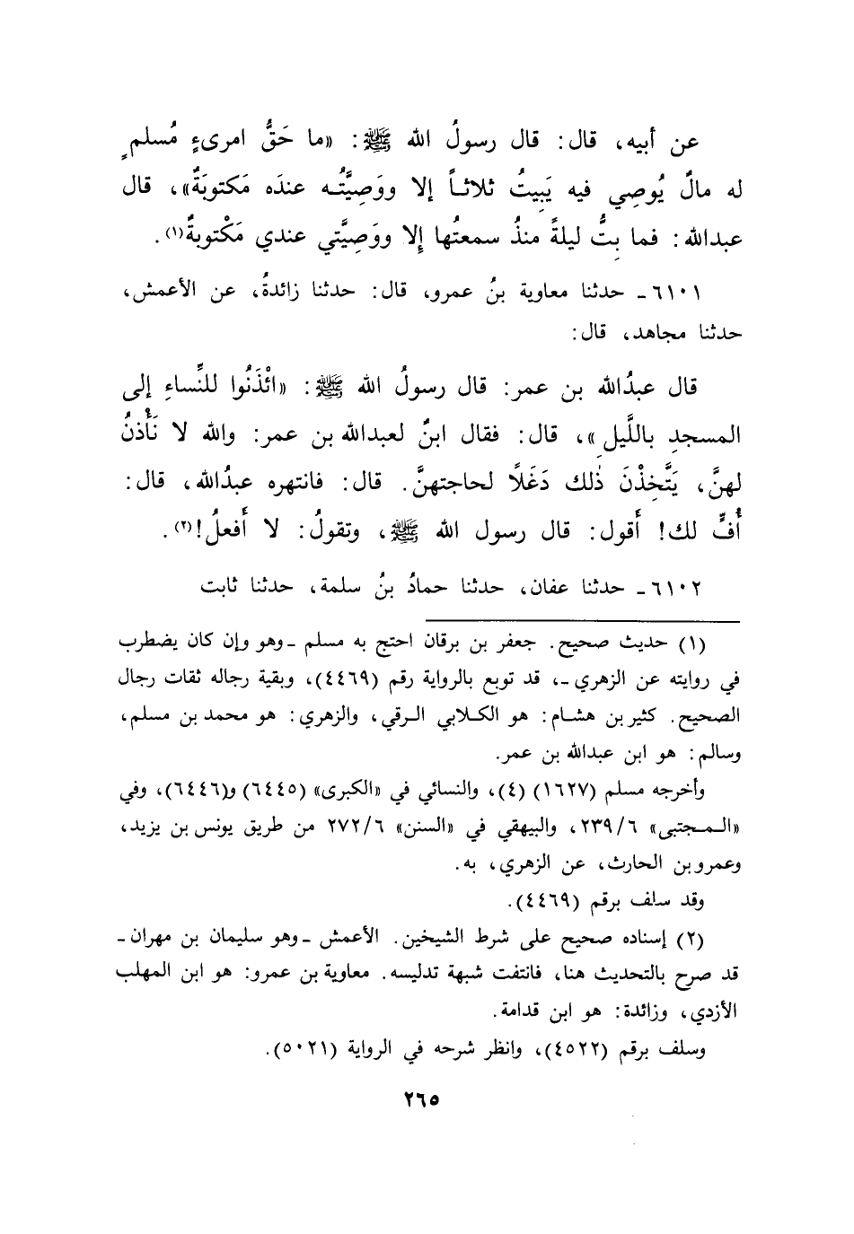 (٢) إسناده صحيح على شرط الشيخين. الأعمش- وهو سليمان بن مهران- قد صرح بالتحديث هنا، فانتفت شبهة تدليسه. معاوية بن عمرو: هو ابن المهلب الأزدي، وزائدة: هو ابن قدامة.