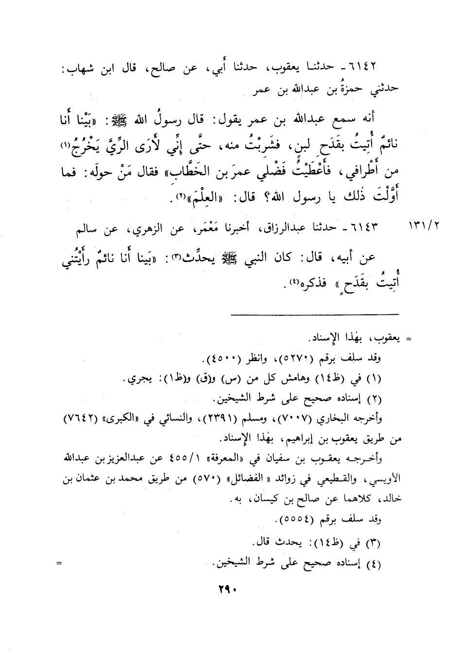 ٦١٤٣ - حَدَّثَنَا عَبْدُ الرَّزَّاقِ، أَخْبَرَنَا مَعْمَرٌ، عَنِ الزُّهْرِيِّ، عَنْ سَالِمٍ، عَنْ أَبِيهِ قَالَ: كَانَ النَّبِيُّ صَلَّى اللهُ عَلَيْهِ وَسَلَّمَ يُحَدِّثُ (٣) : " بَيْنَمَا أَنَا نَائِمٌ رَأَيْتُنِي أُتِيتُ بِقَدَحٍ " فَذَكَرَهُ (٤)