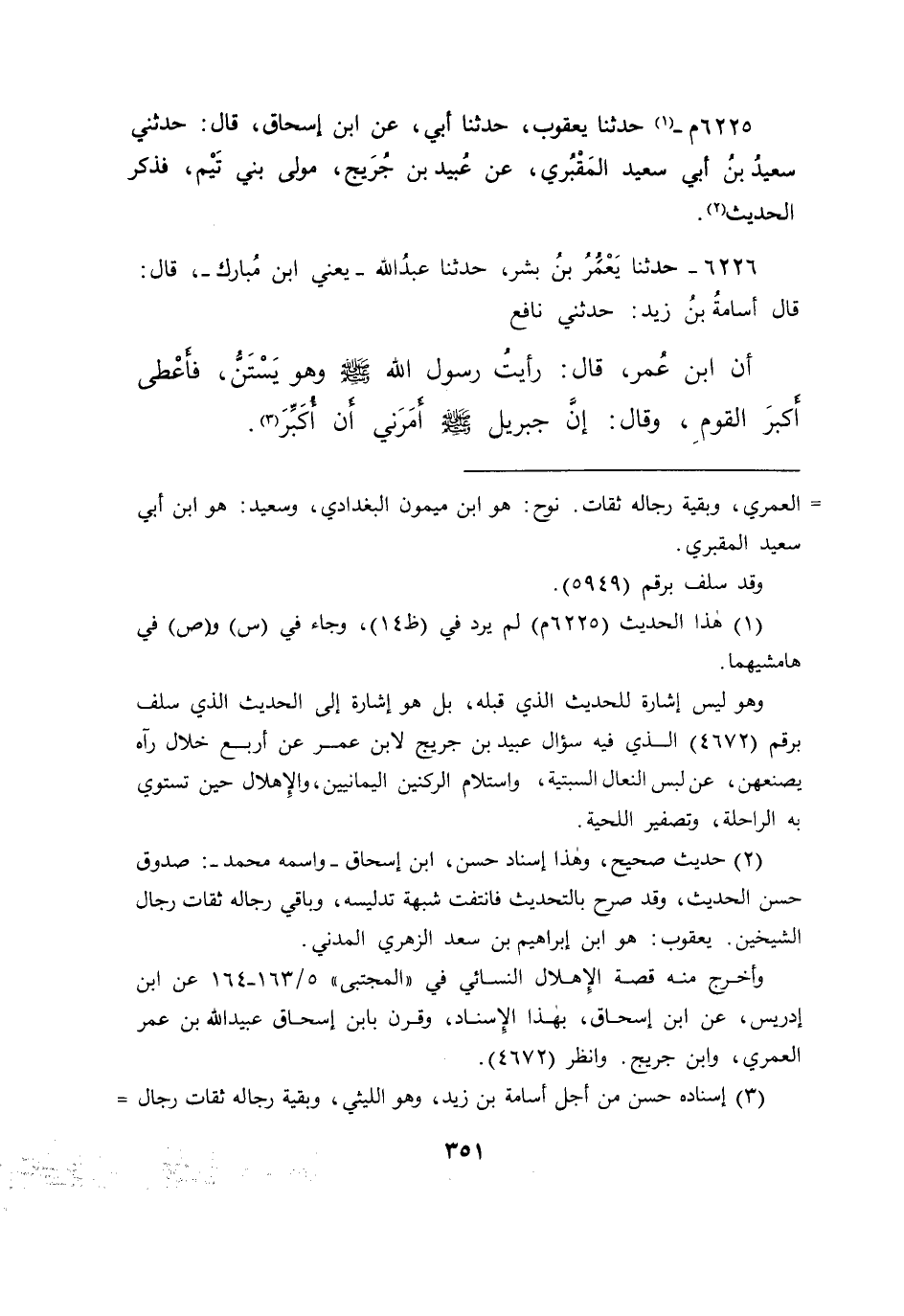 ٦٢٢٥ م - (١) حَدَّثَنَا يَعْقُوبُ، حَدَّثَنَا أَبِي، عَنِ ابْنِ إِسْحَاقَ قَالَ: حَدَّثَنِي سَعِيدُ بْنُ أَبِي سَعِيدٍ الْمَقْبُرِيُّ، عَنْ عُبَيْدِ بْنِ جُرَيْجٍ مَوْلَى بَنِي تَيْمٍ فَذَكَرَ الْحَدِيثَ (٢)