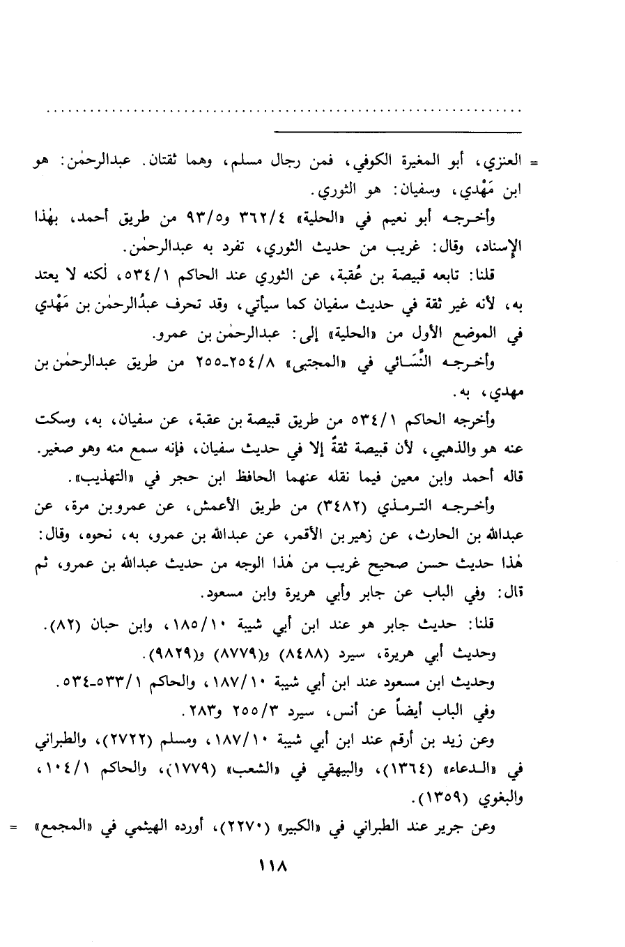 قلنا: تابعه قبيصة بن عُقبة، عن الثوري عند الحاكم ١/٥٣٤، لكنه لا يعتد به، لأنه غير ثقة في حديث سفيان كما سيأتي، وقد تحرف عبد الرحمن بن مهْدي في الموضع الأول من "الحلية" إلى: عبد الرحمن بن عمرو.