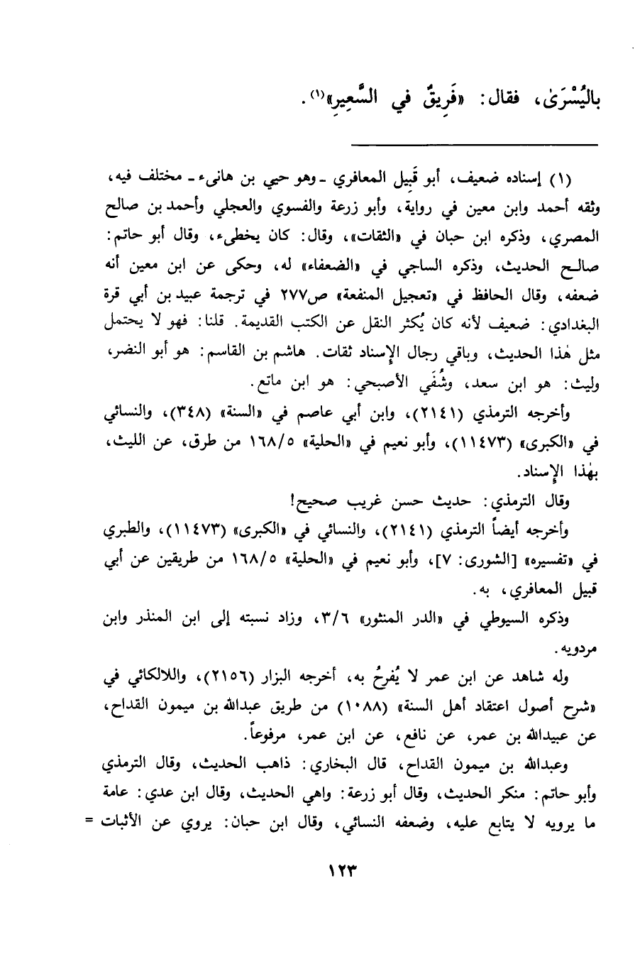 البغدادي: ضعيف لأنه كان يُكثر النقل عن الكتب القديمة. قلنا: فهو لا يحتمل مثل هذا الحديث، وباقي رجال الإسناد ثقات. هاشم بن القاسم: هو أبو النضر، وليث: هو ابن سعد، وشُفي الأصبحي: هو ابن ماتع.