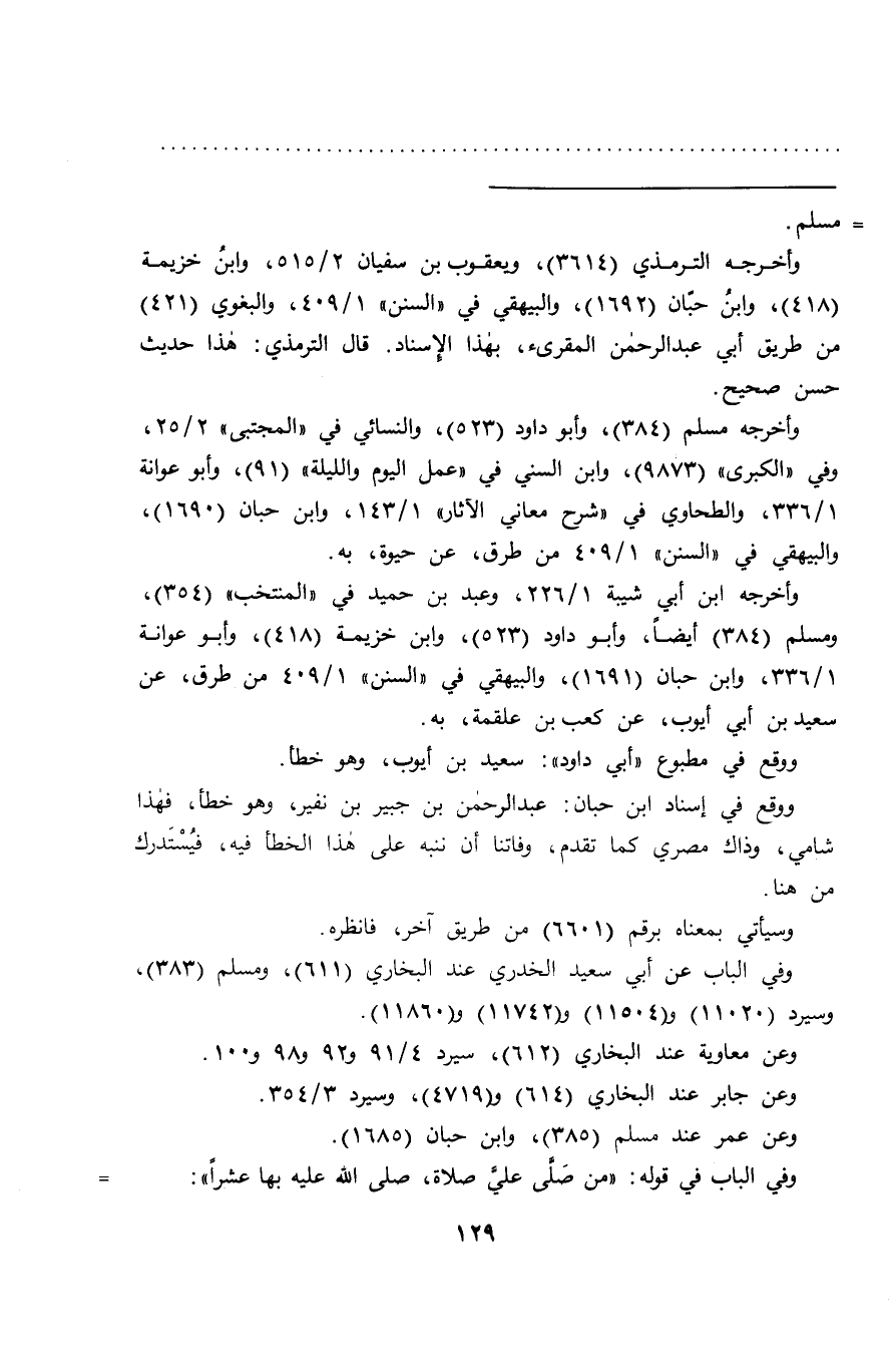 ووقع في إسناد ابن حبان: عبد الرحمن بن جبير بن نفير، وهو خطأ، فهذا شامي، وذاك مصري كما تقدم، وفاتنا أن ننبه على هذا الخطأ فيه، فيُسْتدرك من هنا.