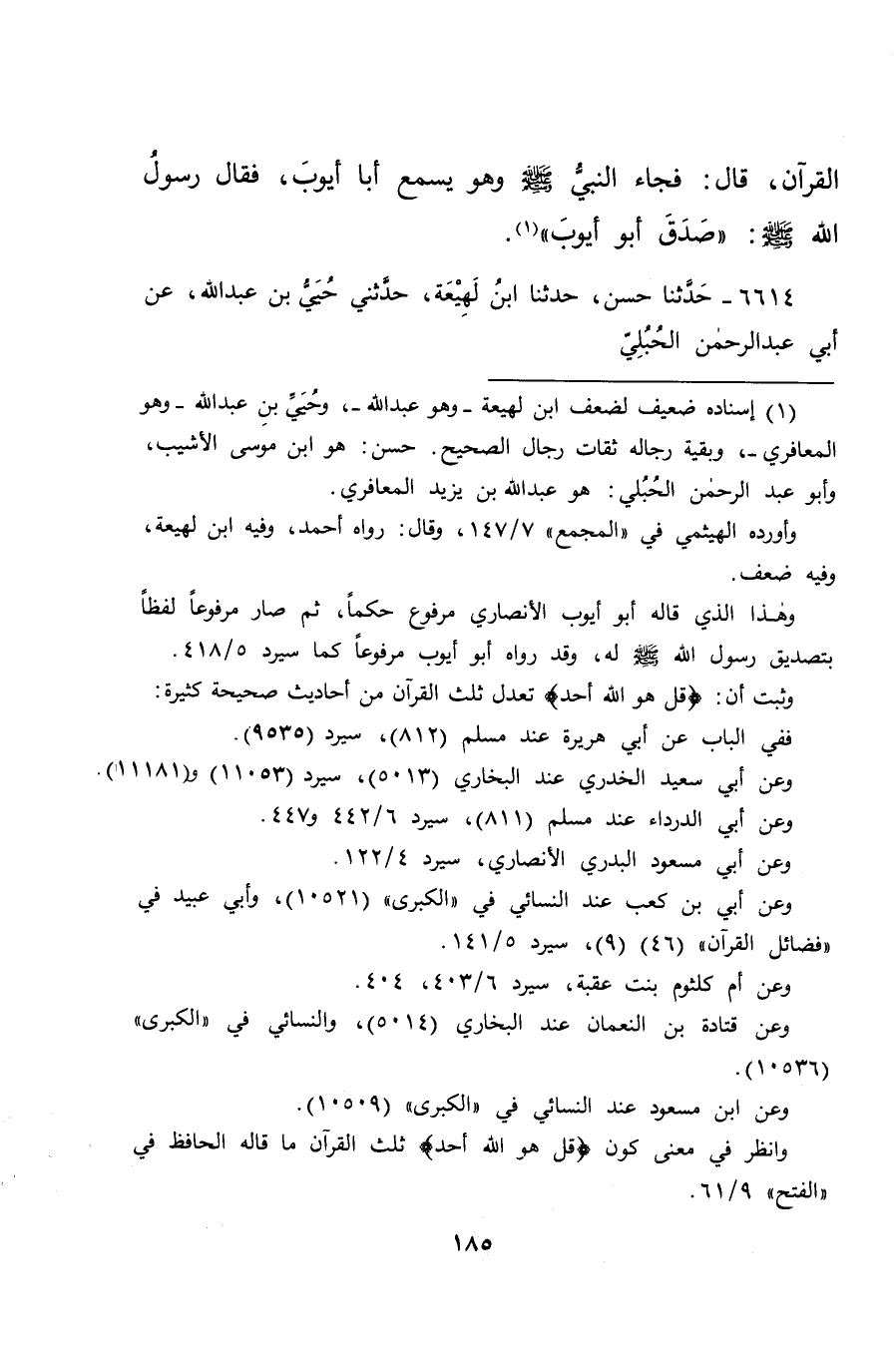 ٦٦١٤ - حَدَّثَنَا حَسَنٌ، حَدَّثَنَا ابْنُ لَهِيعَةَ، حَدَّثَنِي حُيَيُّ بْنُ عَبْدِ اللهِ، عَنْ أَبِي عَبْدِ الرَّحْمَنِ الْحُبُلِيِّ،