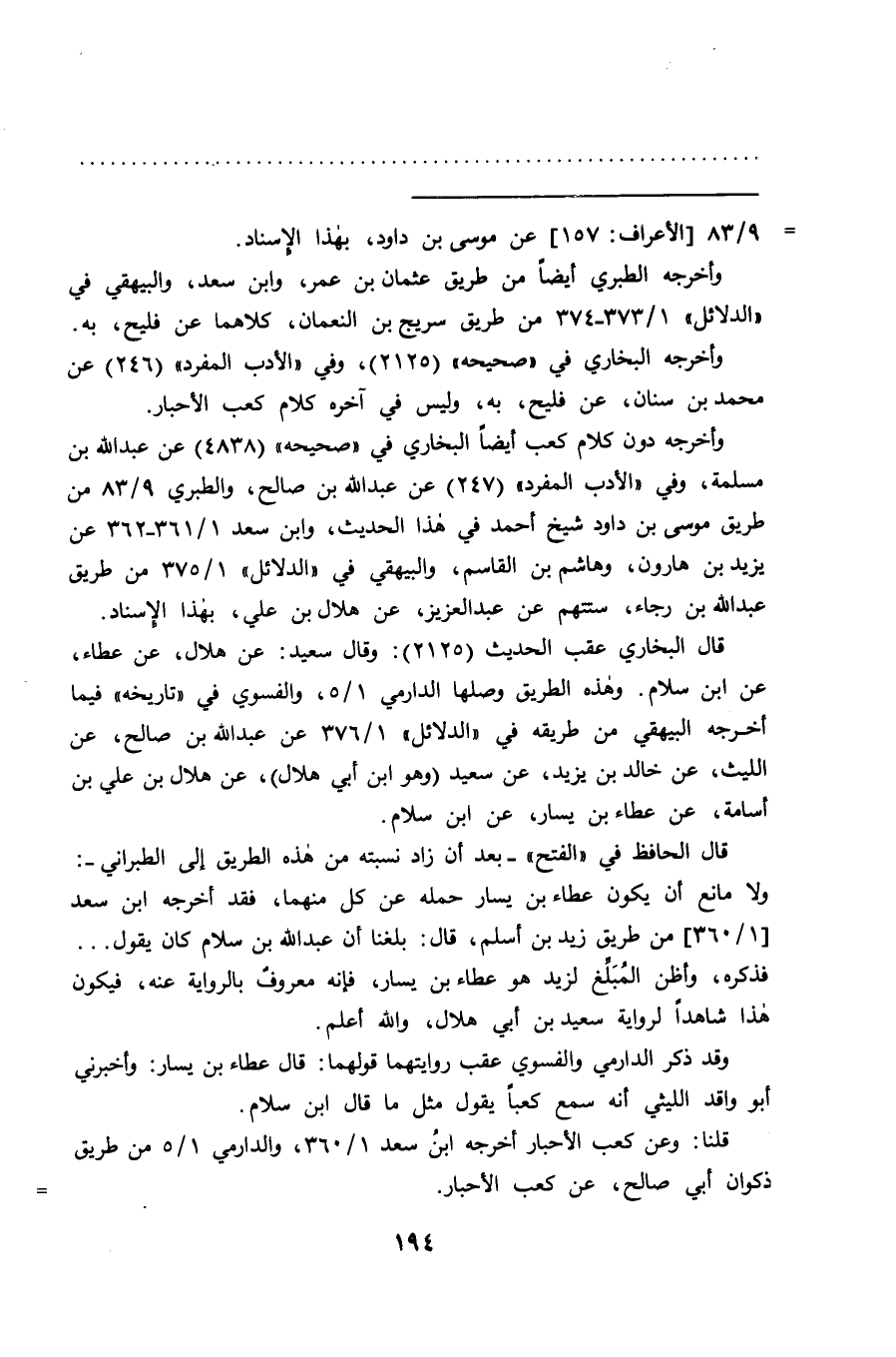 وقد ذكر الدارمي والفسوي عقب روايتهما قولهما: قال عطاء بن يسار: وأخبرني أبو واقد الليثي أنه سمع كعباً يقول مثل ما قال ابن سلام.