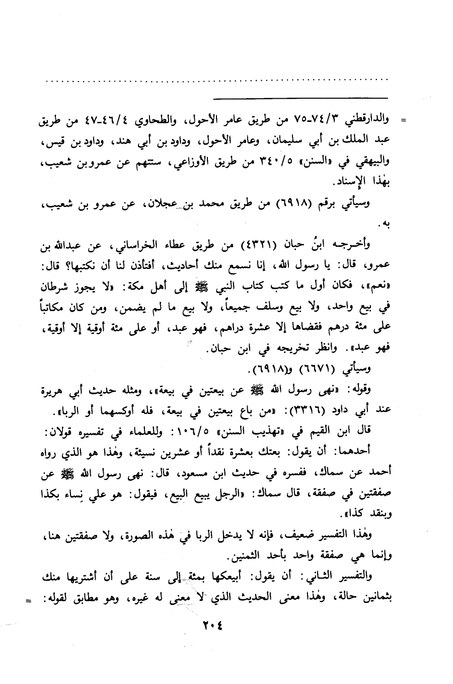= والدارقطني ٣/٧٤-٧٥ من طريق عامر الأحول، والطحاوي ٤/٤٦-٤٧ من طريق عبد الملك بن أبي سليمان، وعامر الأحول، وداو بن أبي هند، وداود بن قيس، والبيهقي في "السنن" ٥/٣٤٠ من طريق الأوزاعي، ستتهم عن عمرو بن شعيب، بهذا الإسناد.