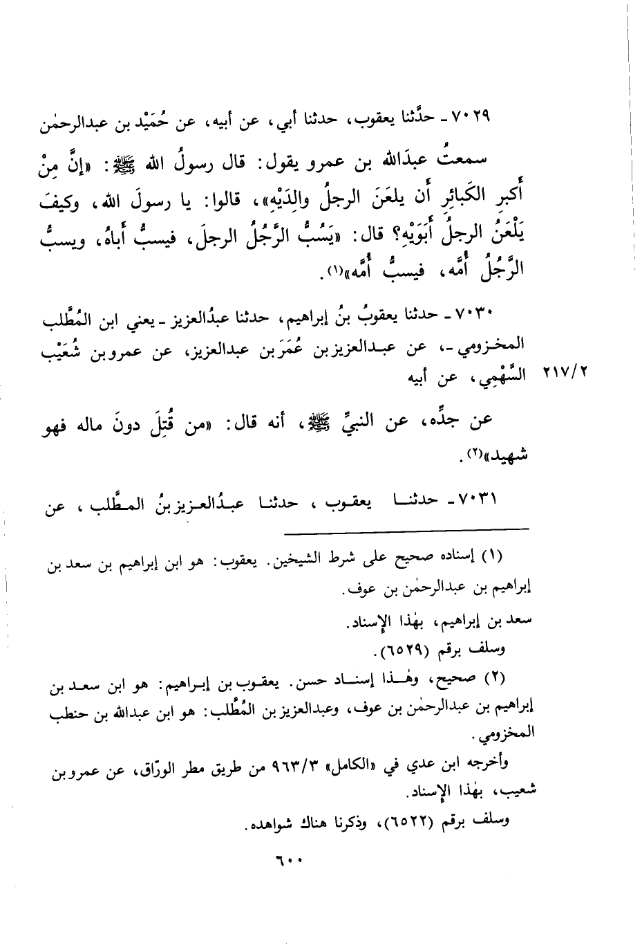 (٢) صحيح، وهذا إسناد حسن. يعقوب بن إبراهيم: هو ابن سعد بن إبراهيم بن عبد الرحمن بن عوف، وعبد العزيز بن المُطلب: هو ابن عبد الله بن حنطب المخزومي.