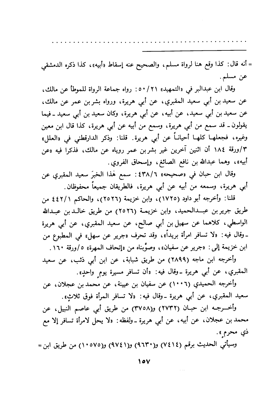قلنا: وأخرجه أبو داود (١٧٢٥) ، وابن خزيمة (٢٥٢٦) ، والحاكم ١/٤٤٢ من طريق جرير بن عبد الحميد، وابن خزيمة (٢٥٢٦) من طريق خالد بن عبد الله الواسطي، كلاهما عن سهيل بن أبي صالح، عن سعيد المقبري، عن أبي هريرة -وقال فيه: "لا تسافر امرأة بريدا"، وقد تحرف "جرير عن سهل" في المطبوع من ابن خزيمة إلى: "جرير عن سفيان"، وصوبناه من "إتحاف المهرة" ٥/ورقة ١٦٠.