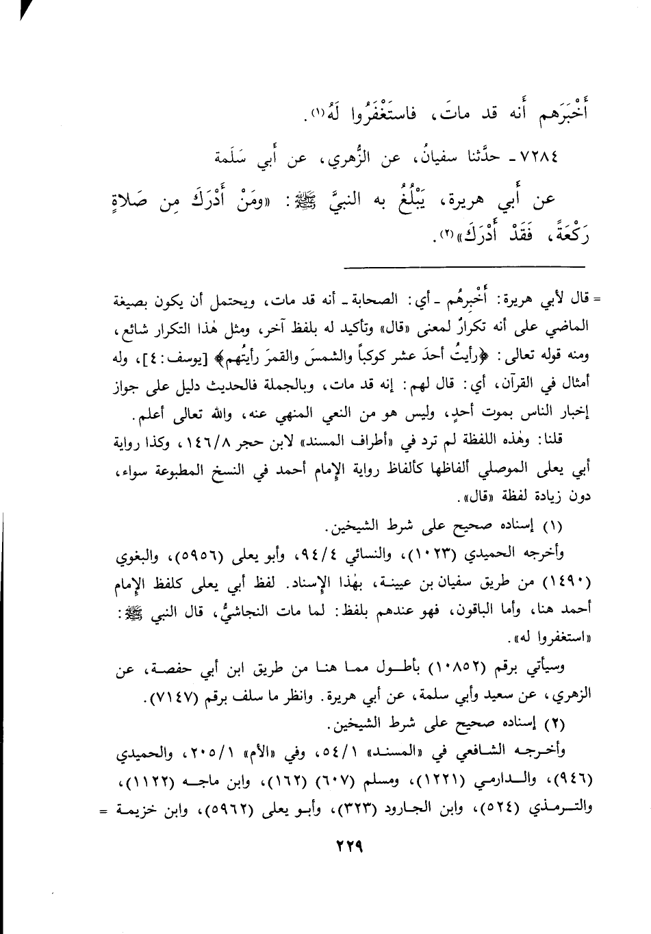 ٧٢٨٤ - حَدَّثَنَا سُفْيَانُ، عَنِ الزُّهْرِيِّ، عَنْ أَبِي سَلَمَةَ، عَنْ أَبِي هُرَيْرَةَ، يَبْلُغُ بِهِ النَّبِيَّ صَلَّى اللهُ عَلَيْهِ وَسَلَّمَ: " وَمَنْ أَدْرَكَ مِنْ صَلَاةٍ رَكْعَةً، فَقَدْ أَدْرَكَ " (٢)