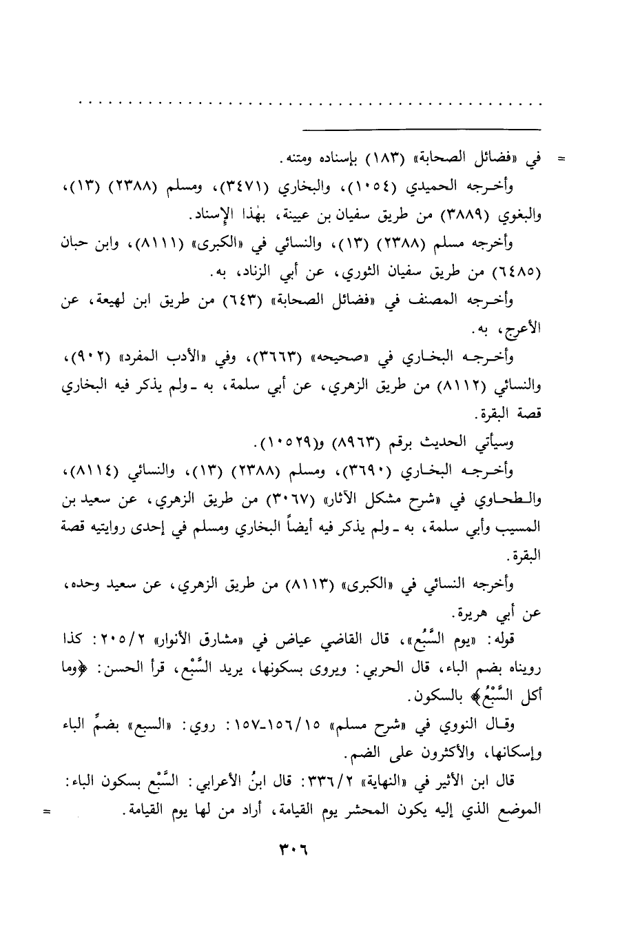 قال ابن الأثير في "النهاية" ٢/٣٣٦: قال ابن الأعرابي: السبع بسكون الباء: الموضع الذي إليه يكون المحشر يوم القيامة، أراد من لها يوم القيامة.=