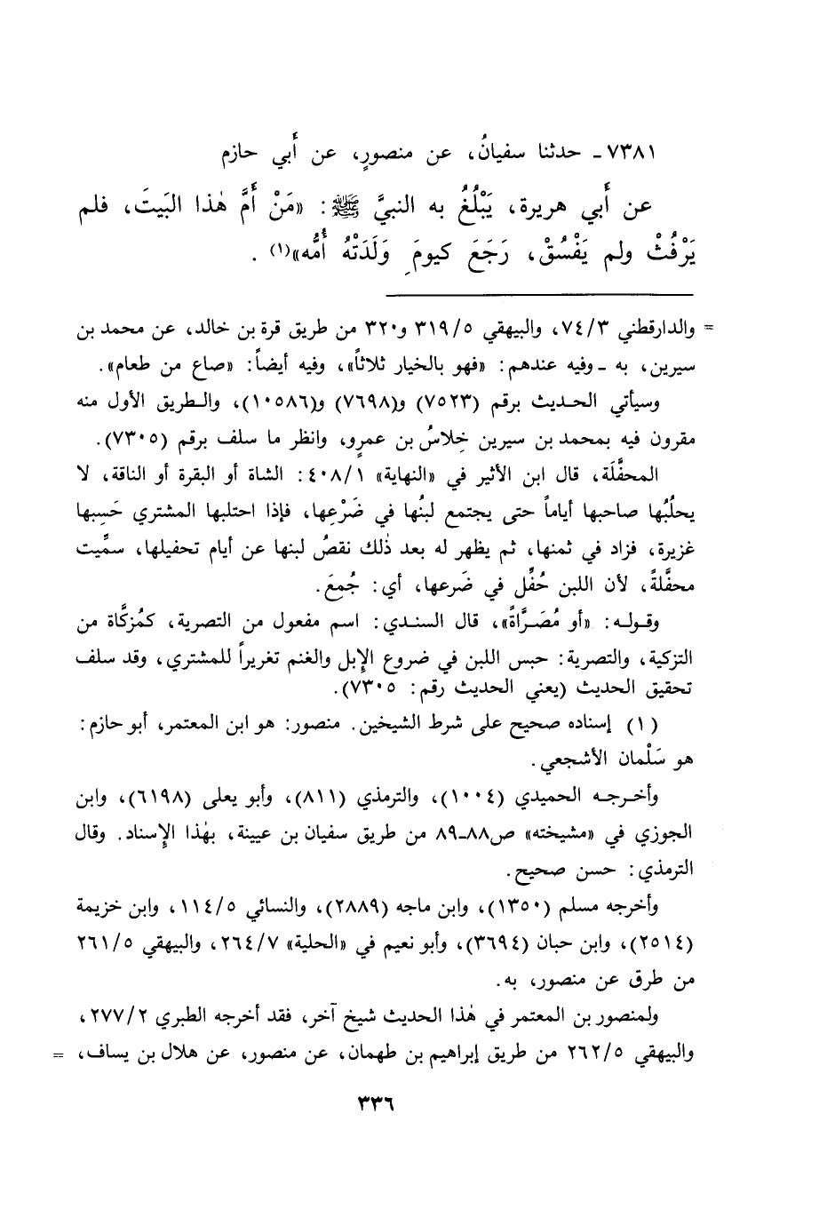 ٧٣٨١ - حَدَّثَنَا سُفْيَانُ، عَنْ مَنْصُورٍ، عَنْ أَبِي حَازِمٍ، عَنْ أَبِي هُرَيْرَةَ، يَبْلُغُ بِهِ النَّبِيَّ صَلَّى اللهُ عَلَيْهِ وَسَلَّمَ: " مَنْ أَمَّ هَذَا الْبَيْتَ، فَلَمْ يَرْفُثْ وَلَمْ يَفْسُقْ، رَجَعَ كَيَوْمِ وَلَدَتْهُ أُمُّهُ " (١)